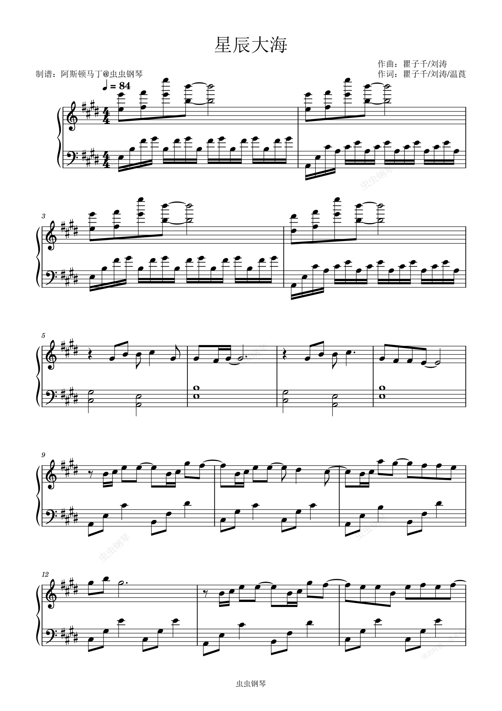 钢琴谱:星辰大海 - 黄霄雲【初学简易版】