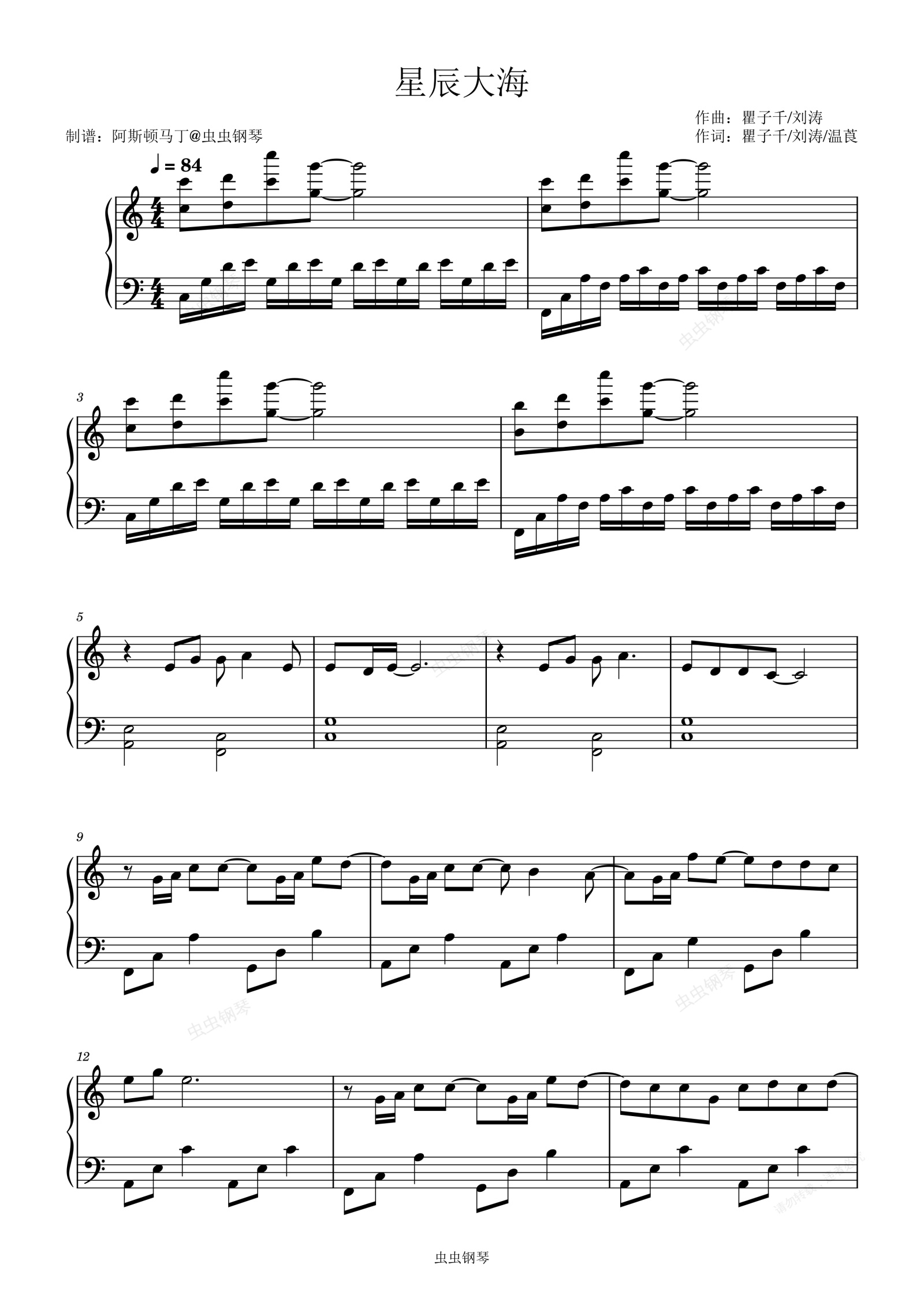 钢琴谱:星辰大海 - 黄霄雲【初学简易版】