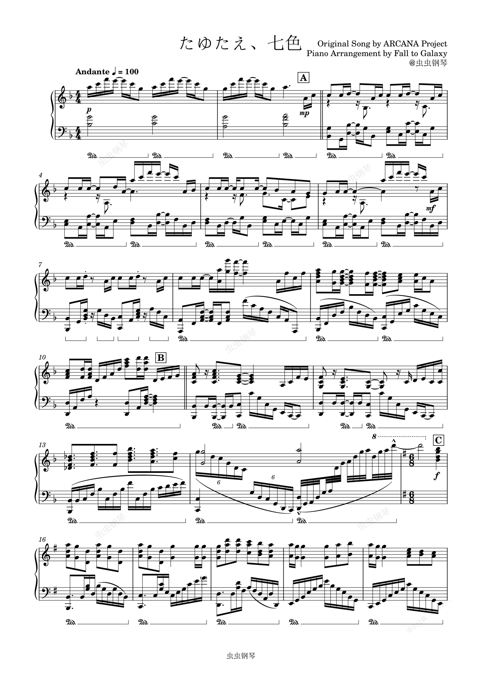 钢琴谱:【高难钢琴改编】白沙的水族馆op1 - たゆたえ、七色