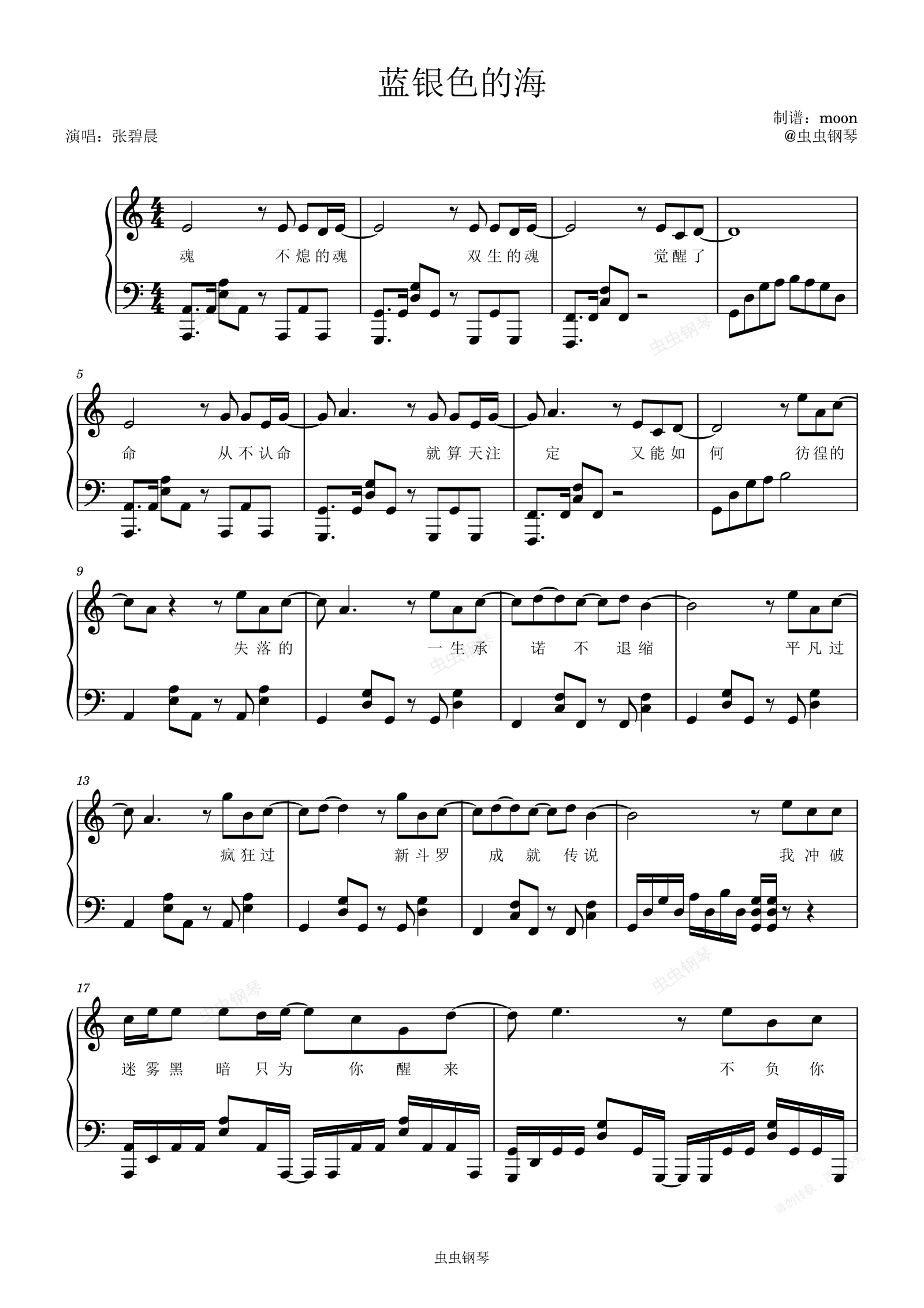 钢琴谱:蓝银色的海 斗罗大陆手游 精编