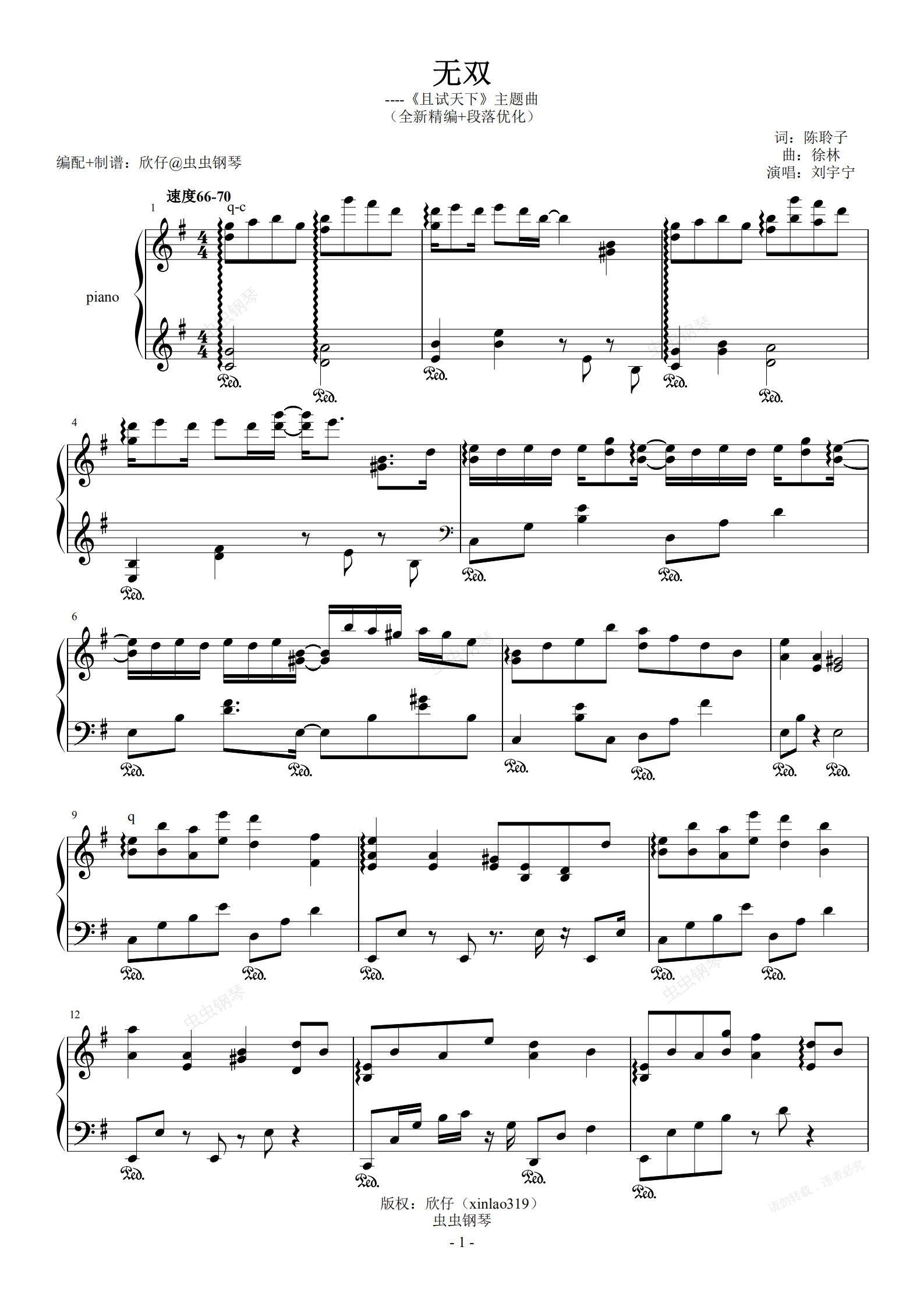 钢琴谱:刘宇宁-G《无双》(《且试天下主题曲、段落优化》)