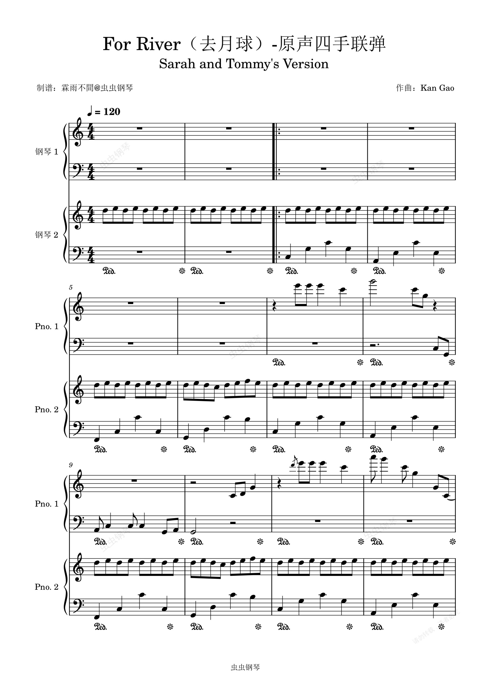 钢琴谱:For River(去月球)-原声四手联弹