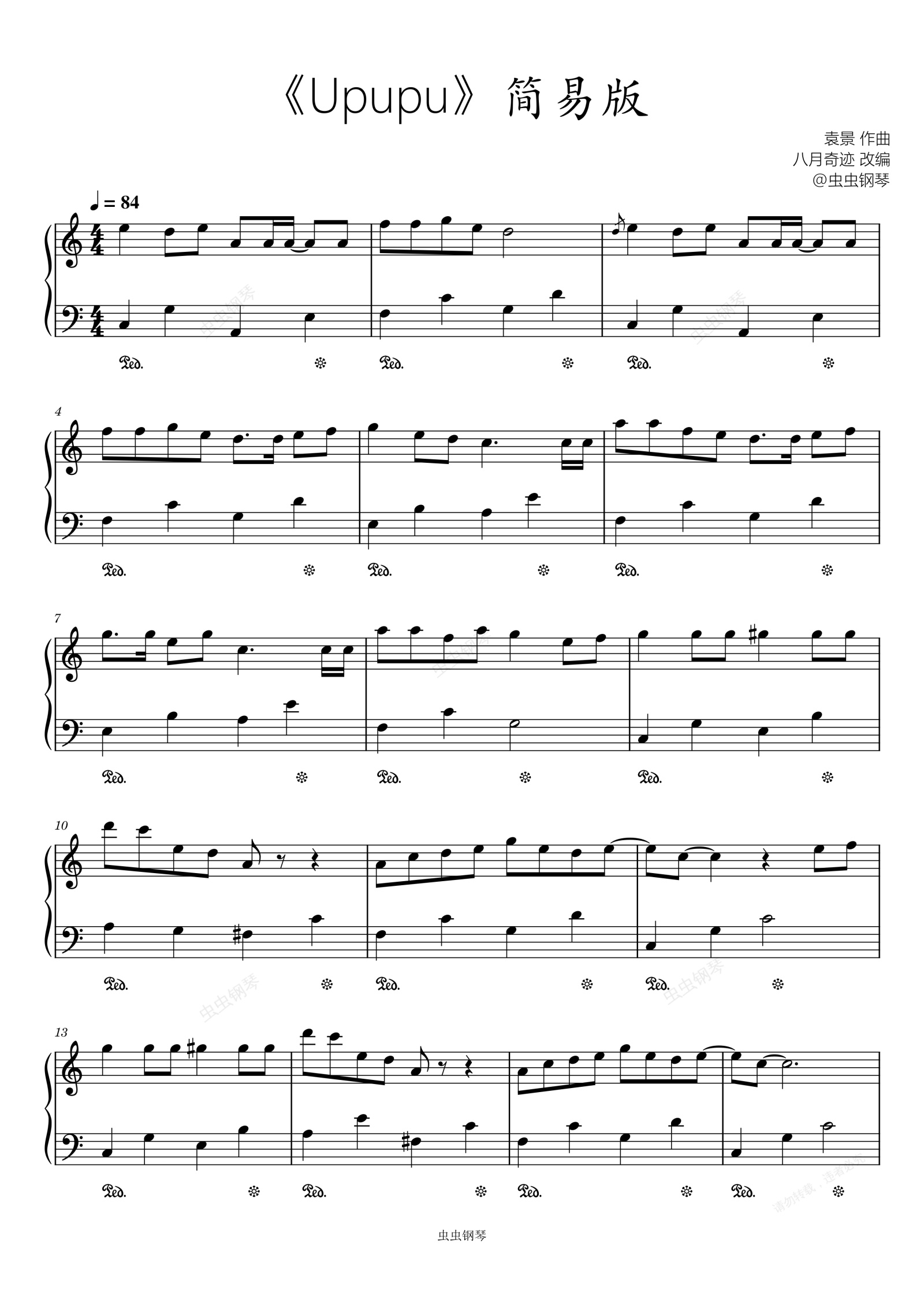 钢琴谱:Upupu C调儿童简易版 拜厄程度