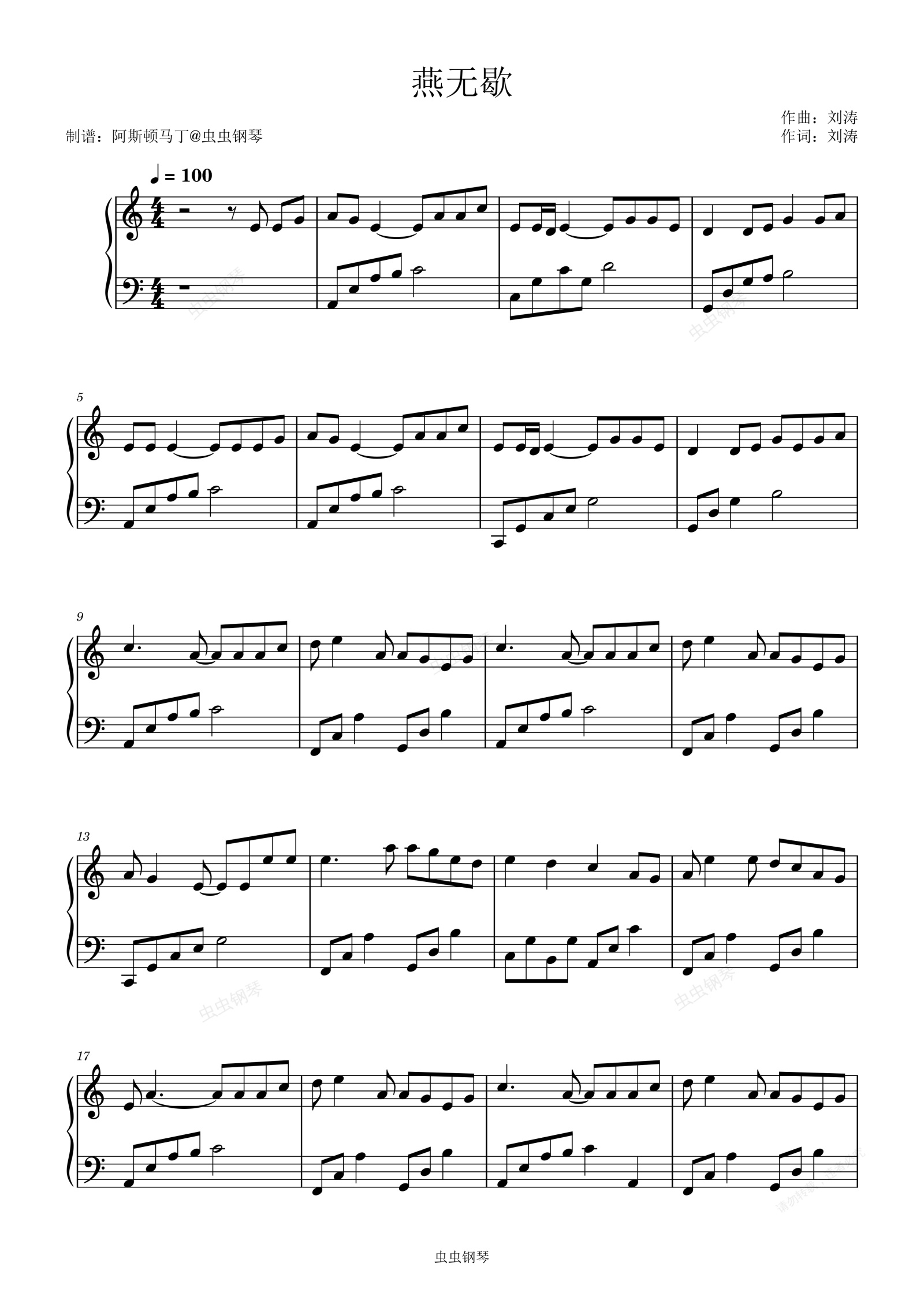 钢琴谱:燕无歇 - 蒋雪儿【初学简易版】