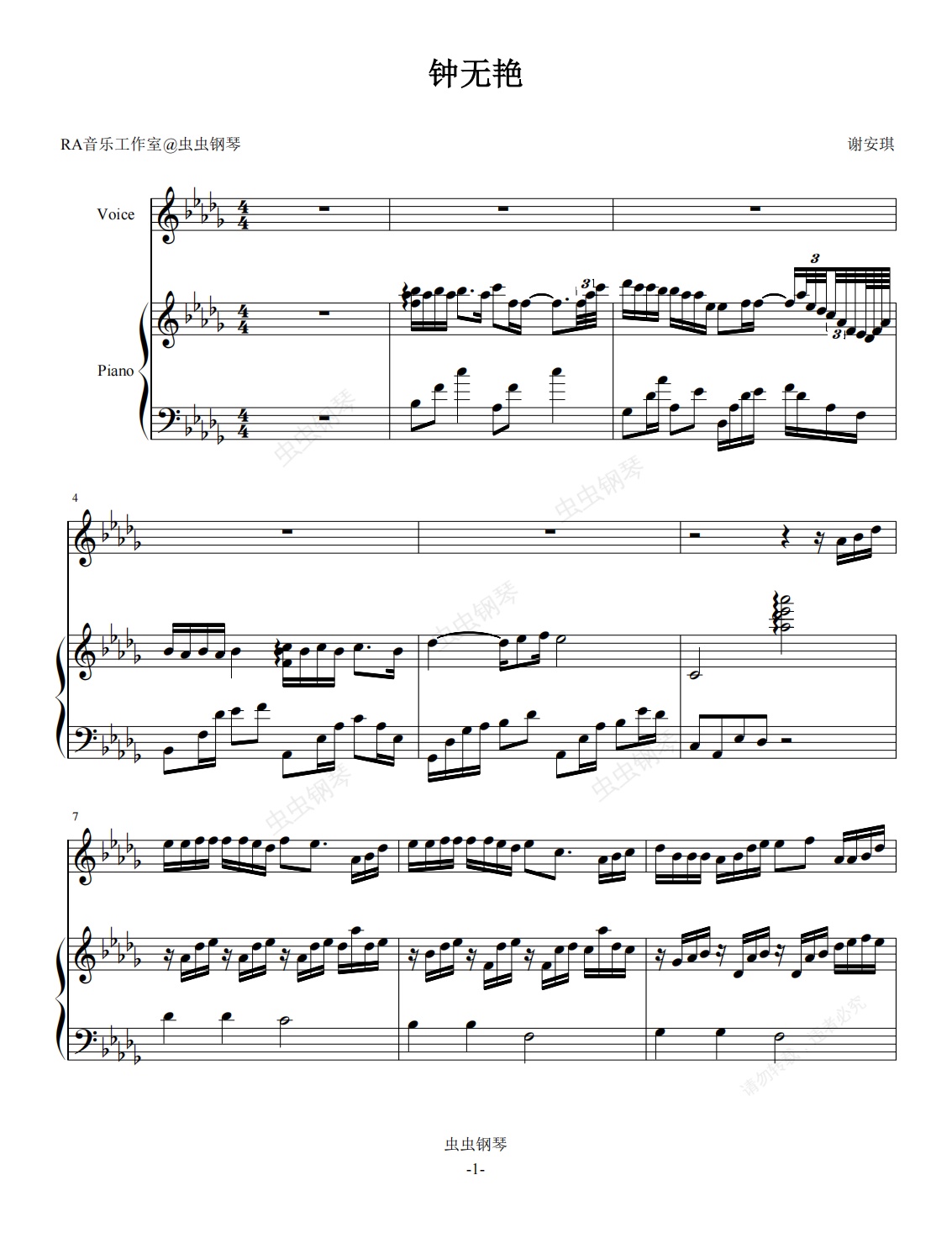 钢琴谱:钟无艳-谢安琪-伴奏谱