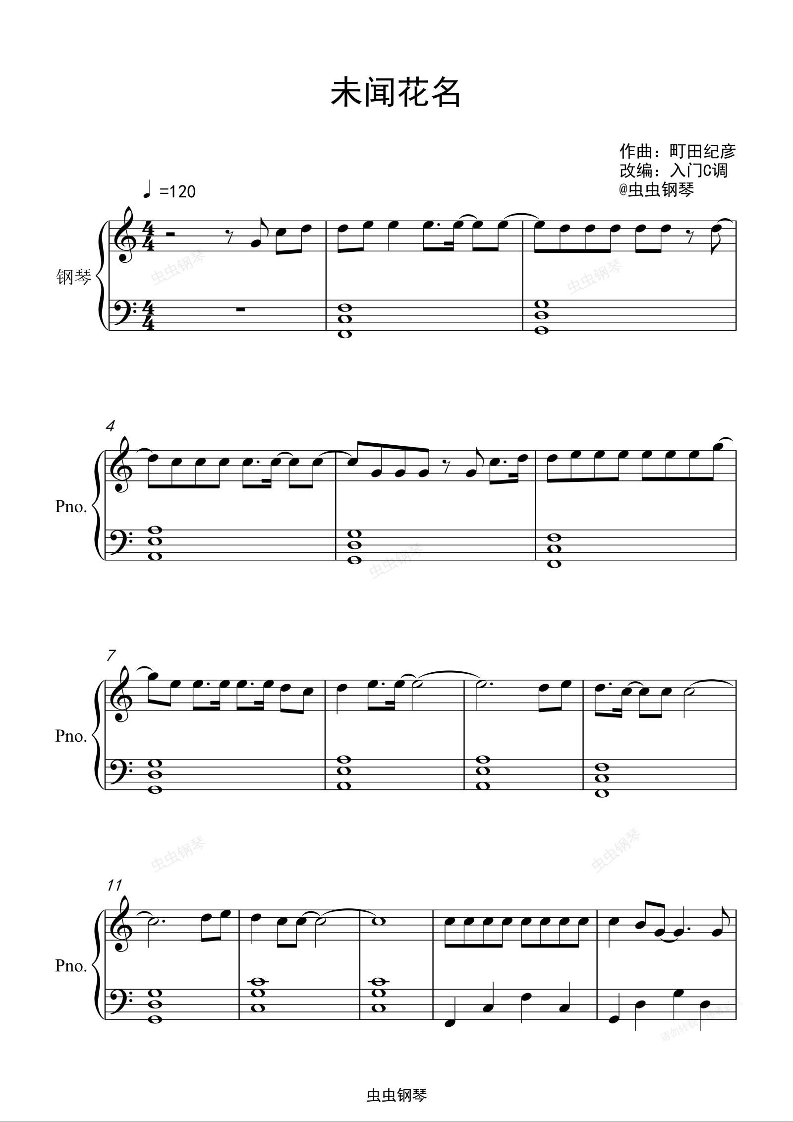 钢琴谱:Silent Siren《未闻花名》入门C调简单版