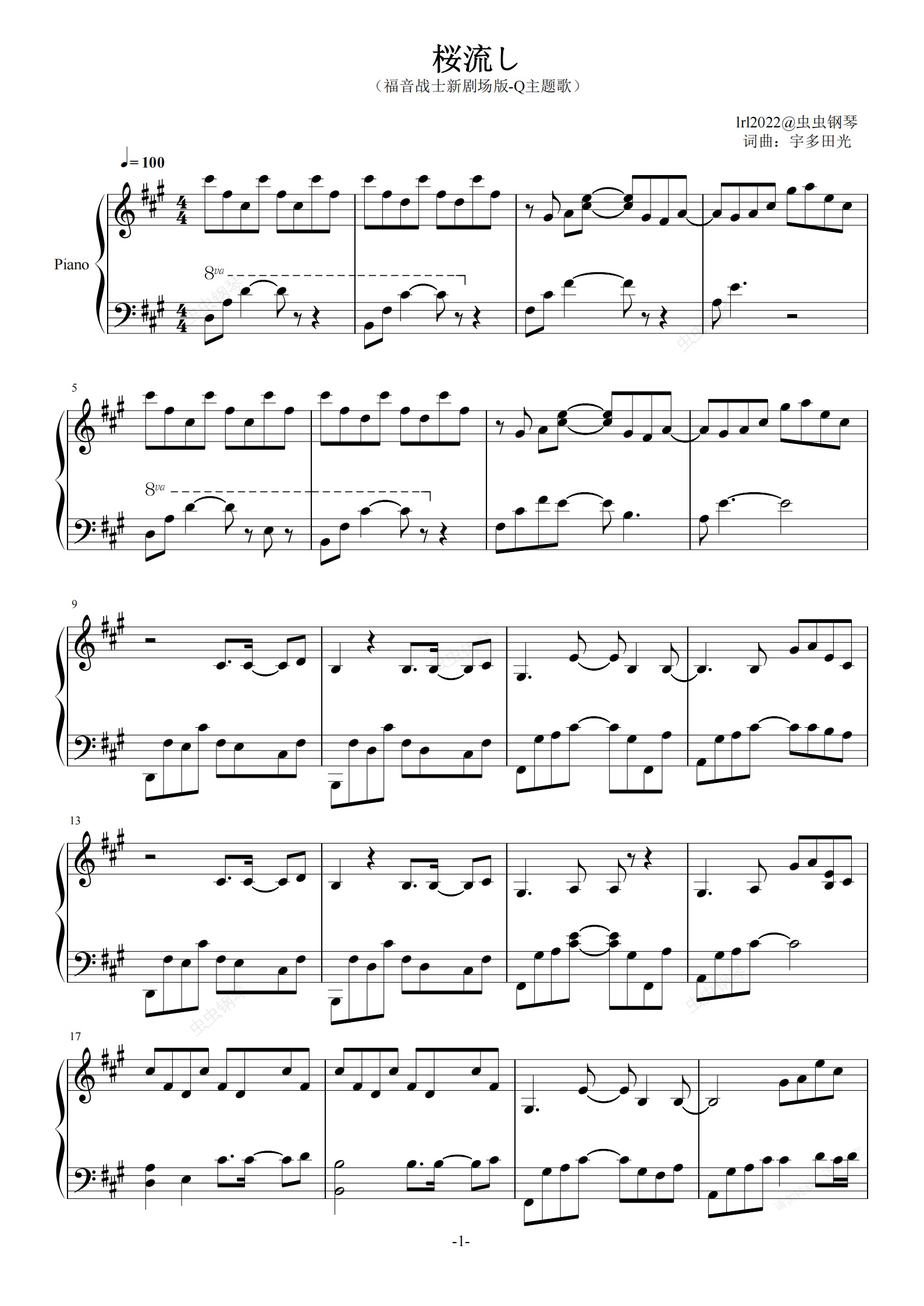 钢琴谱:桜流し-福音战士新剧场版-Q主题歌-宇多田光