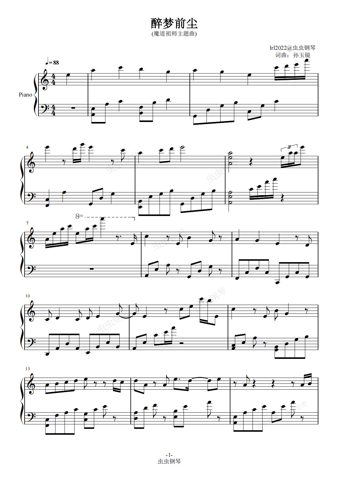 钢琴谱:醉梦前尘-魔道祖师主题曲