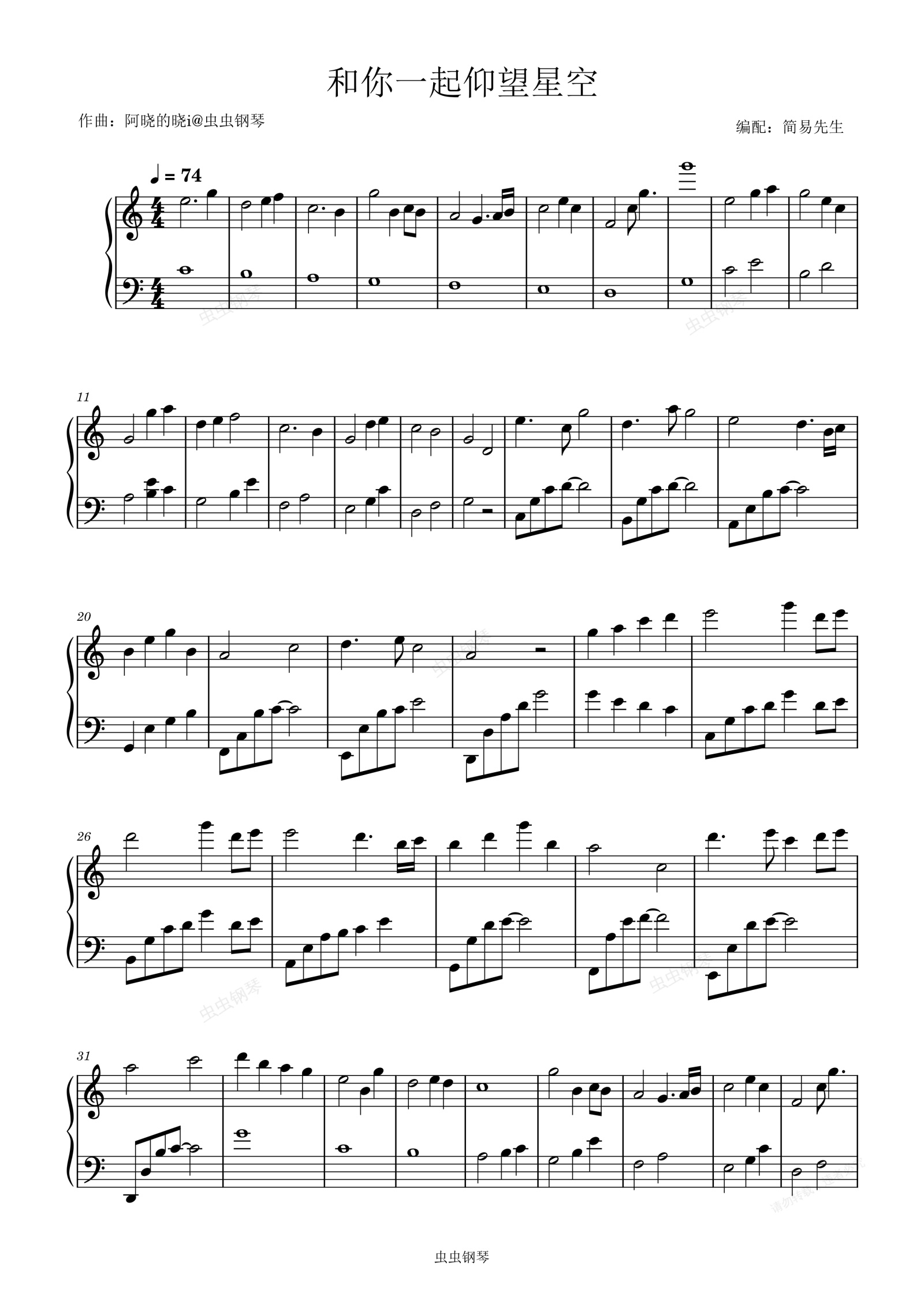 钢琴谱:和你一起仰望星空(纯钢琴版)