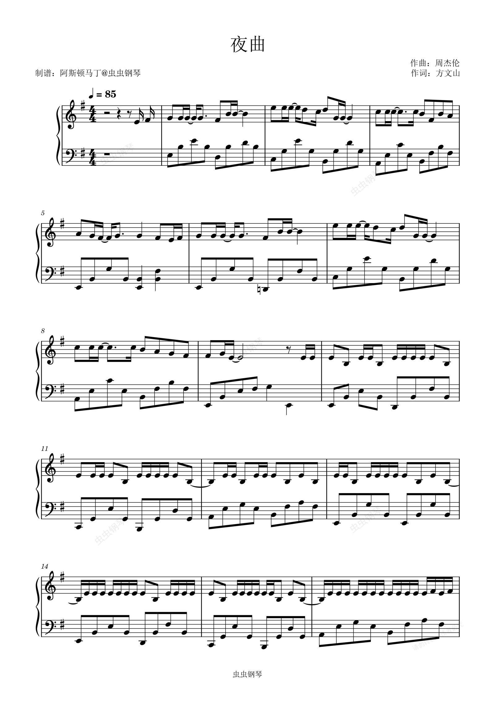 钢琴谱:夜曲 - 周杰伦【初学简易版】