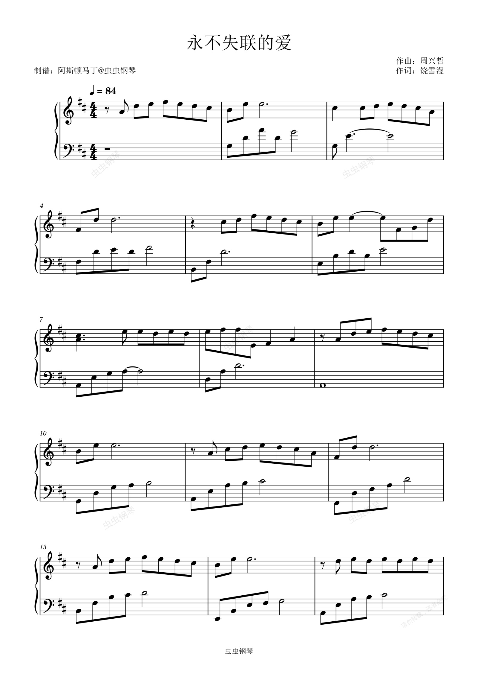 钢琴谱:永不失联的爱 - 单依纯