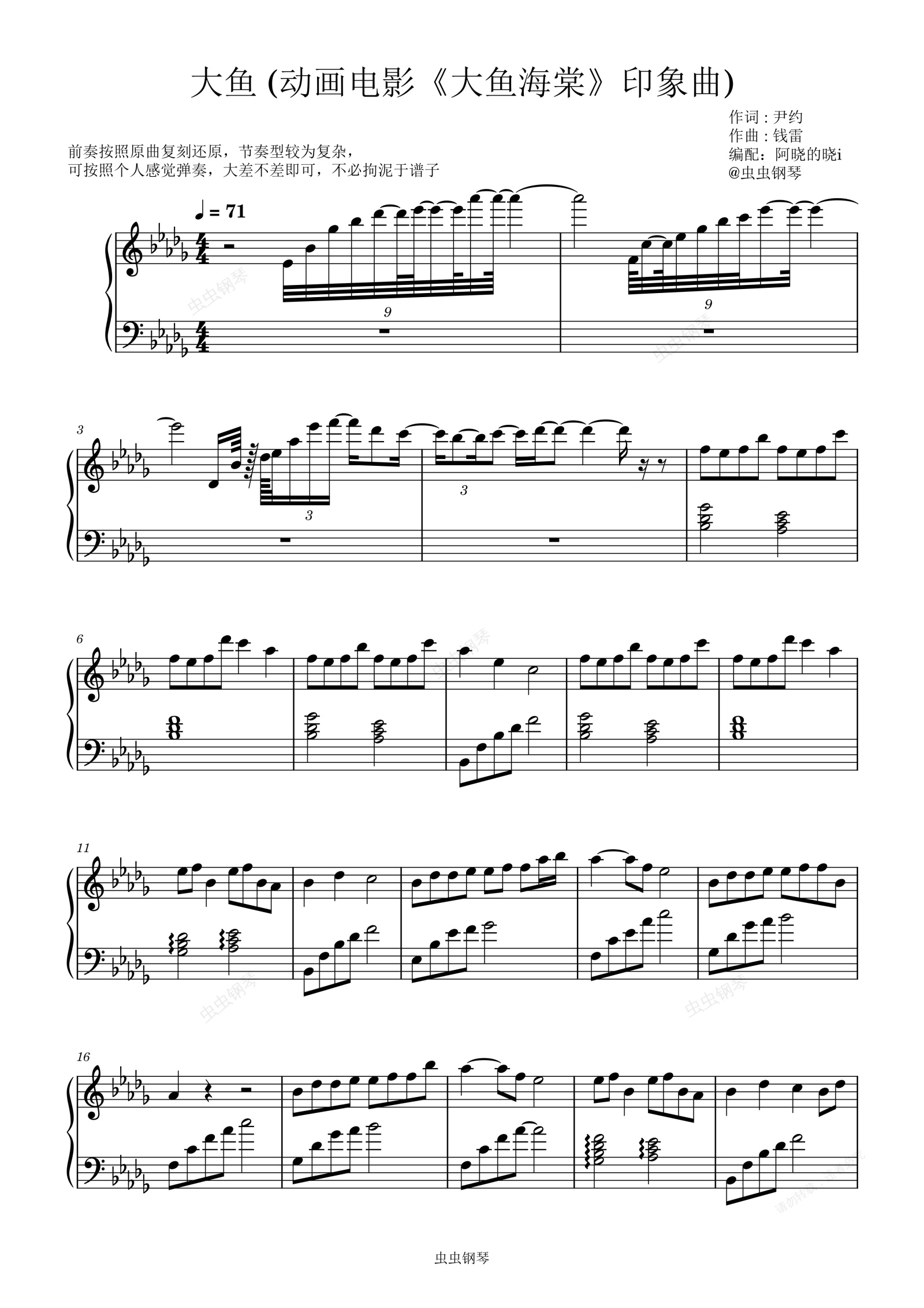 钢琴谱:大鱼 经典钢琴版 (动画电影《大鱼海棠》印象曲)