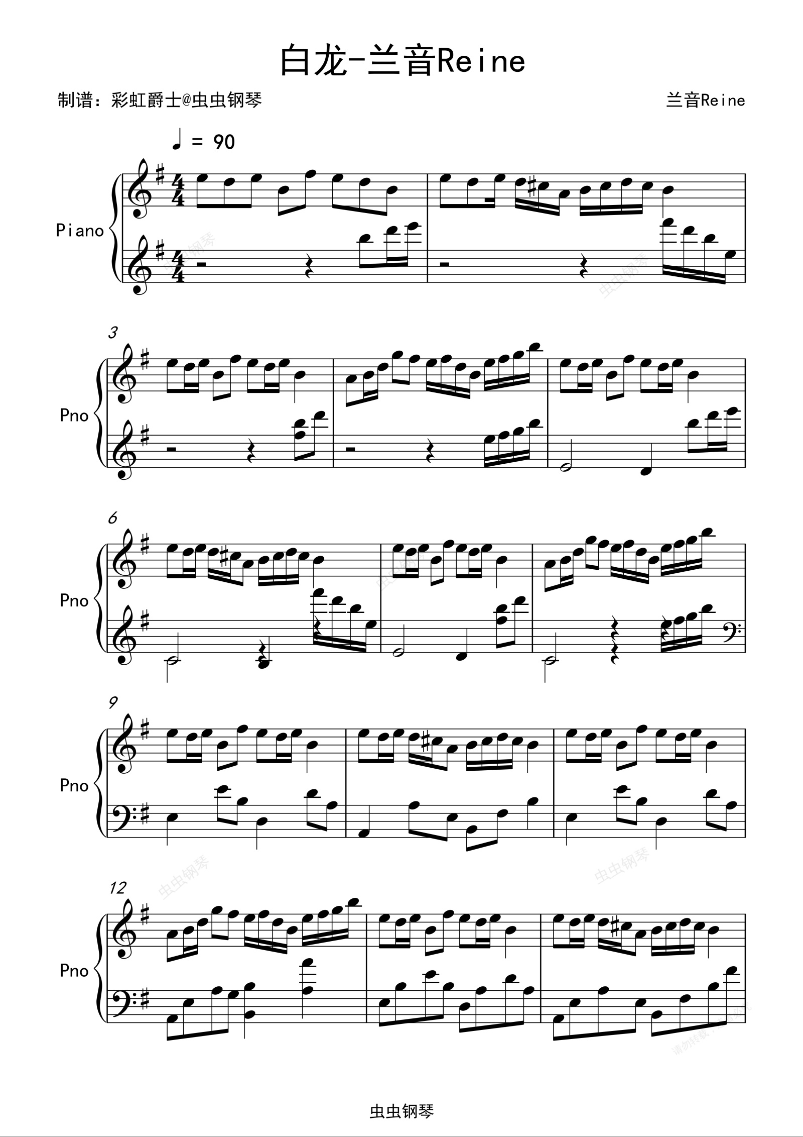钢琴谱:白龙-兰音Reine 钢琴 完整版