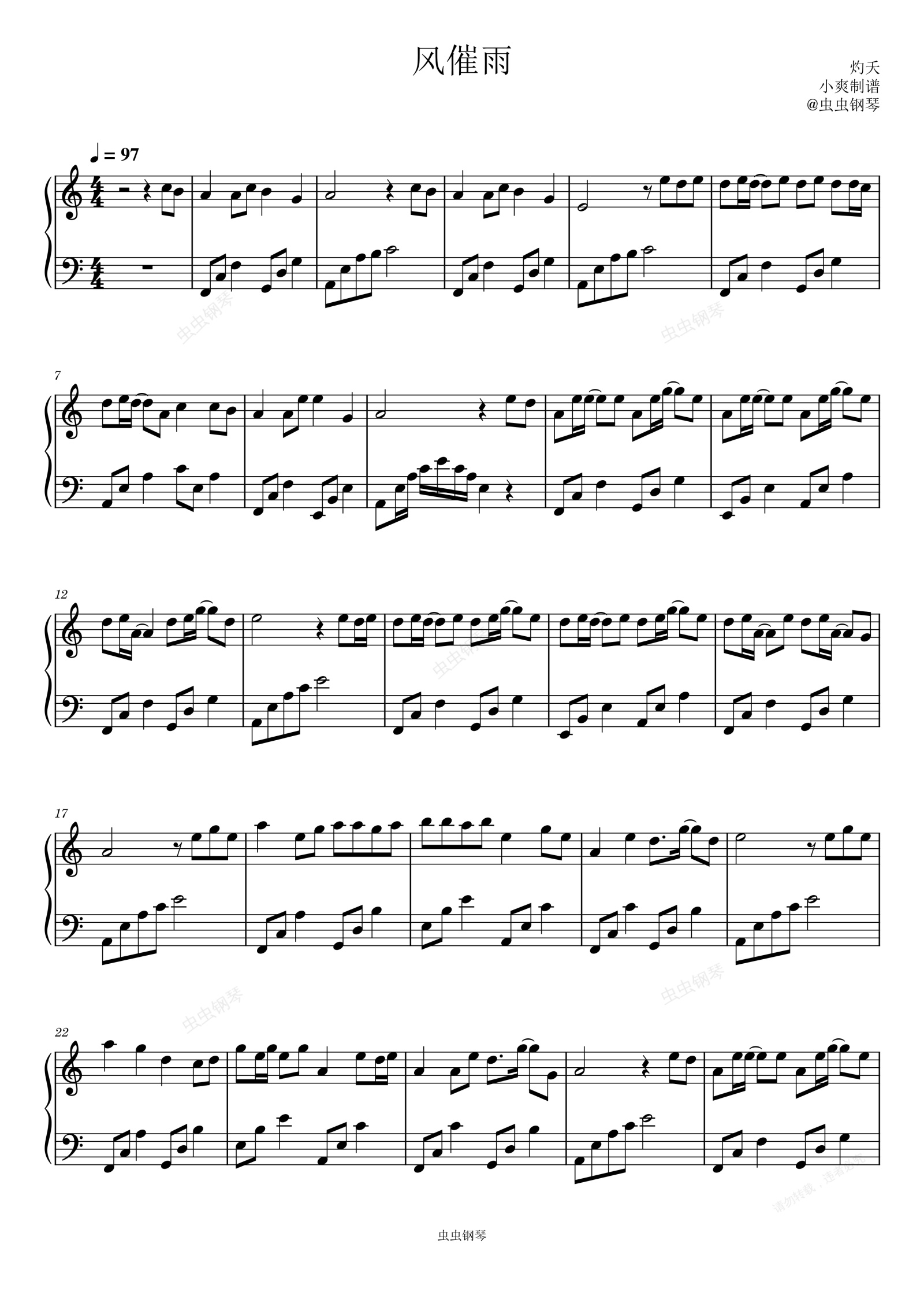 钢琴谱:风催雨