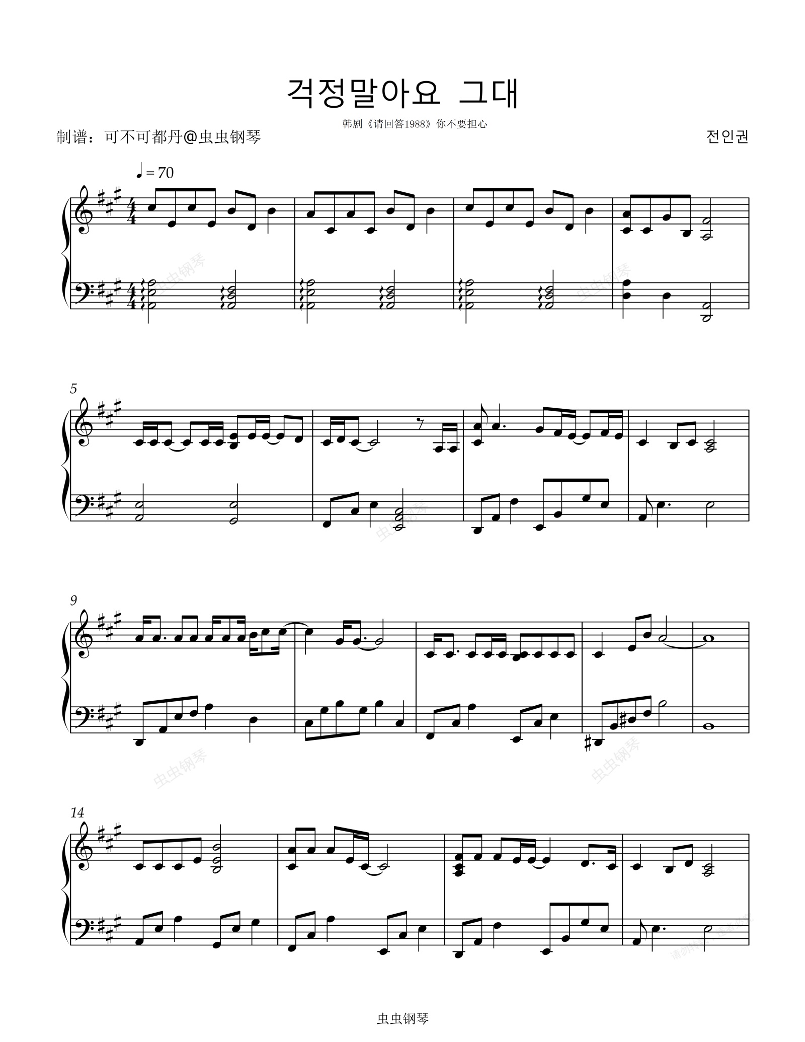 钢琴谱:《请回答1988》你不要担心걱정말아요 그대