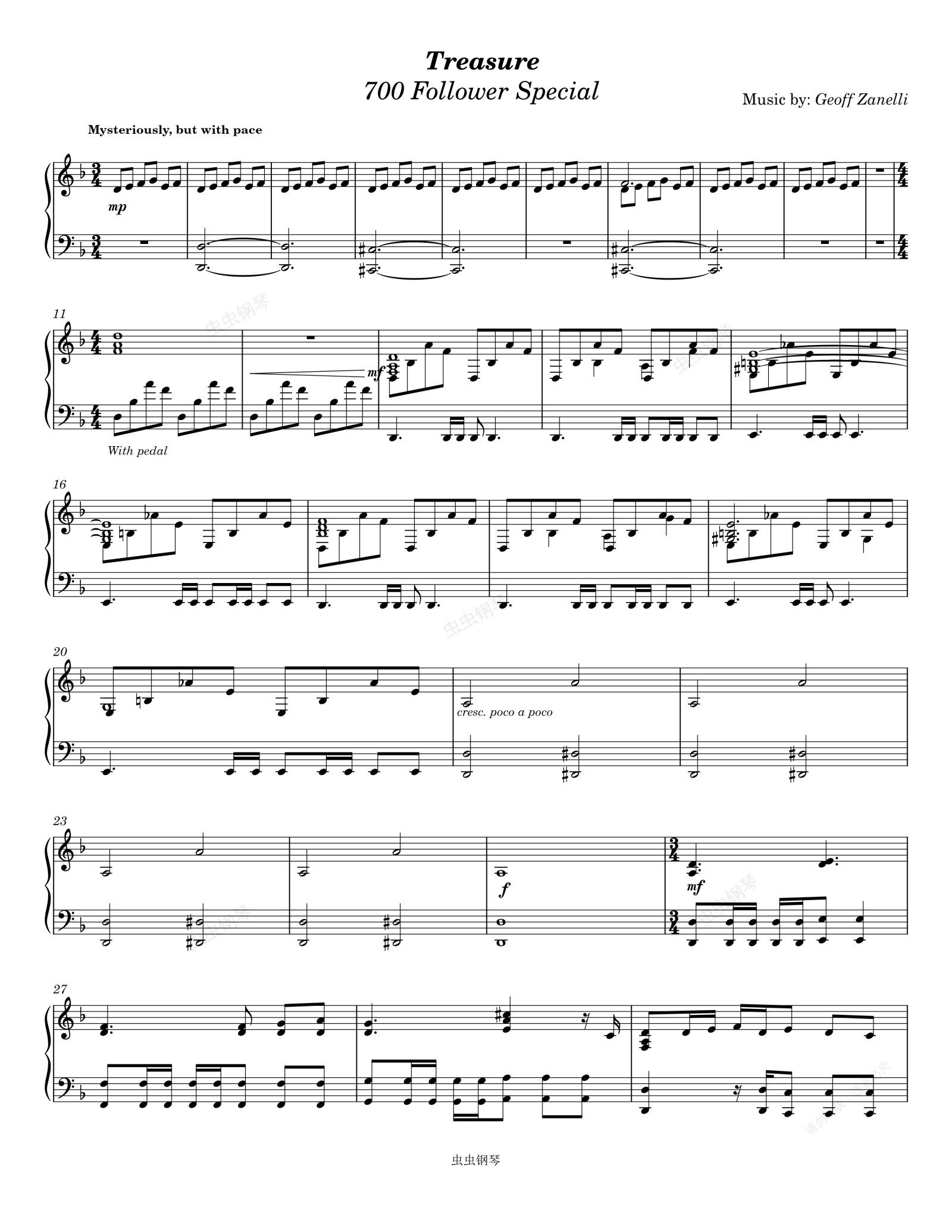 钢琴谱:加勒比海盗 电影-Treasure