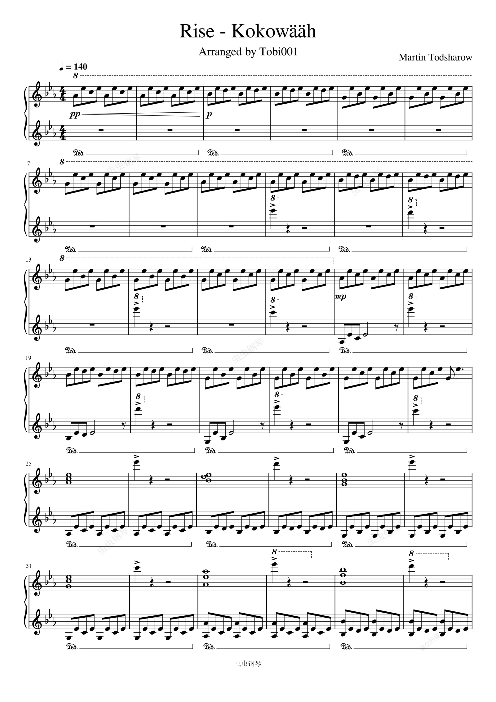 钢琴谱:红酒烩鸡2 电影-Rise (Kokowääh)