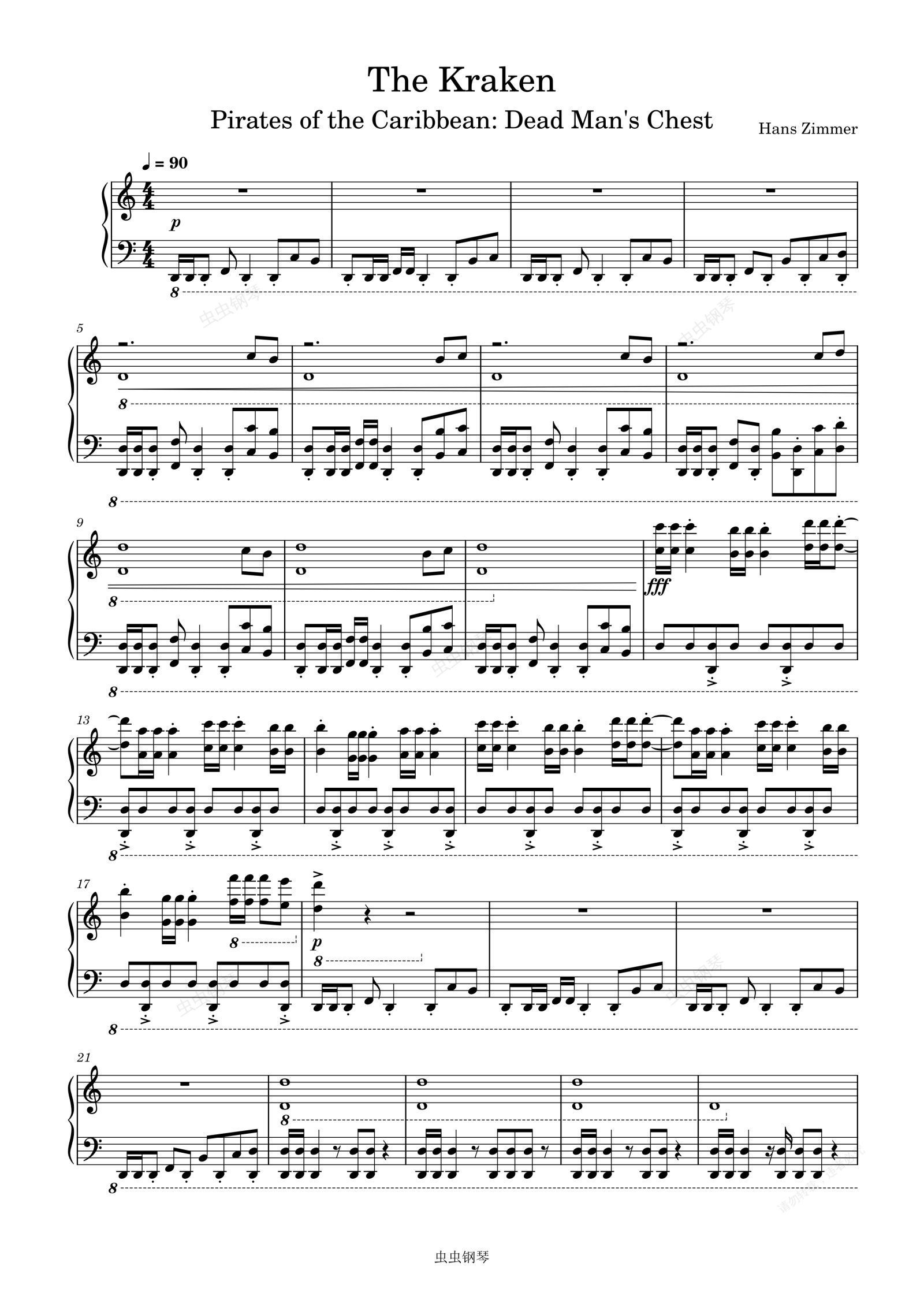 钢琴谱:加勒比海盗 电影-The Kraken-Hans Zimmer