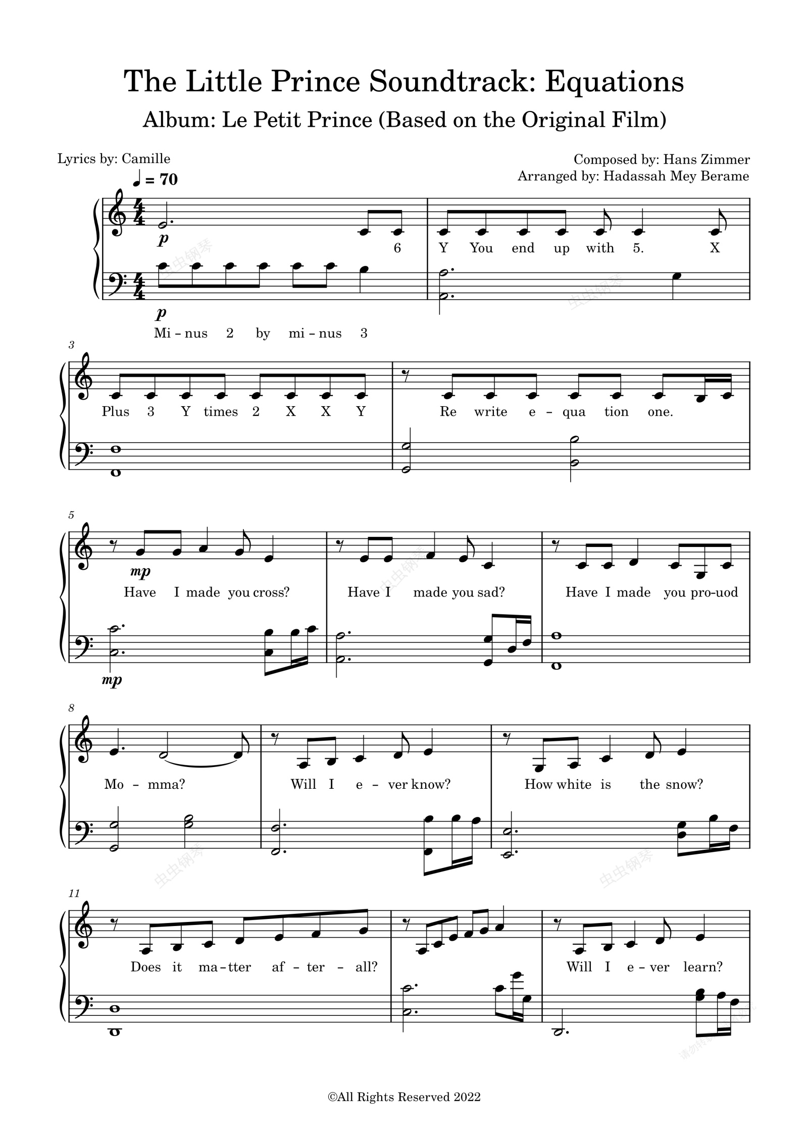 钢琴谱:小王子 动画电影- Equation -Hans Zimmer/Camille/Clément Ducol