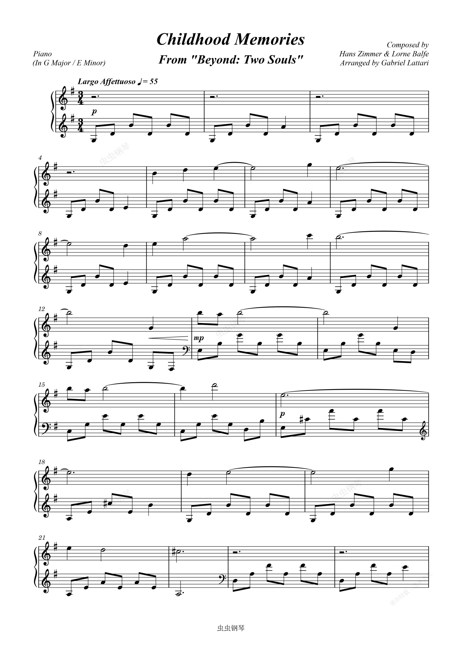 钢琴谱:超凡双生 游戏-Childhood Memories - Hans Zimmer