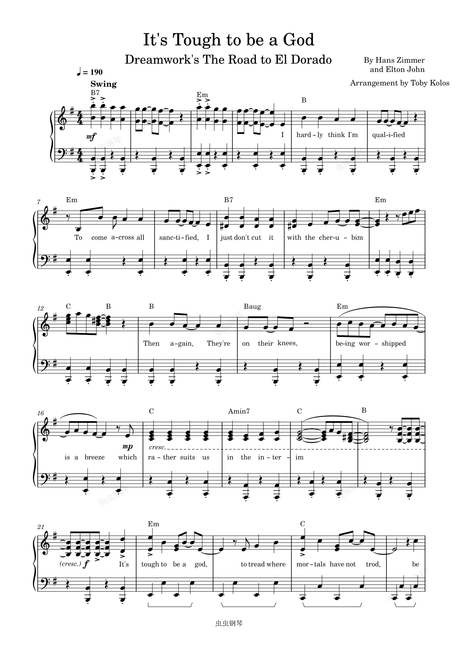 钢琴谱:勇闯黄金城 电影-It's Tough to be a God-Elton John