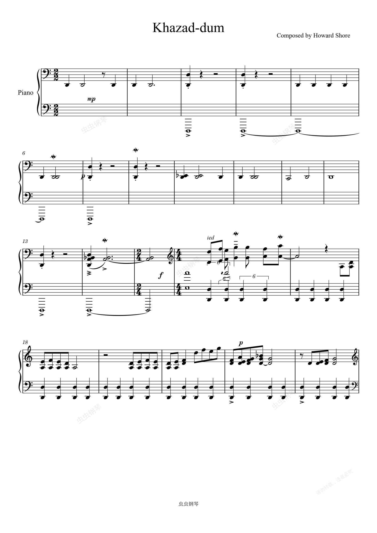 钢琴谱:指环王:护戒使者 电影-Khazad-dûm-Howard Shore