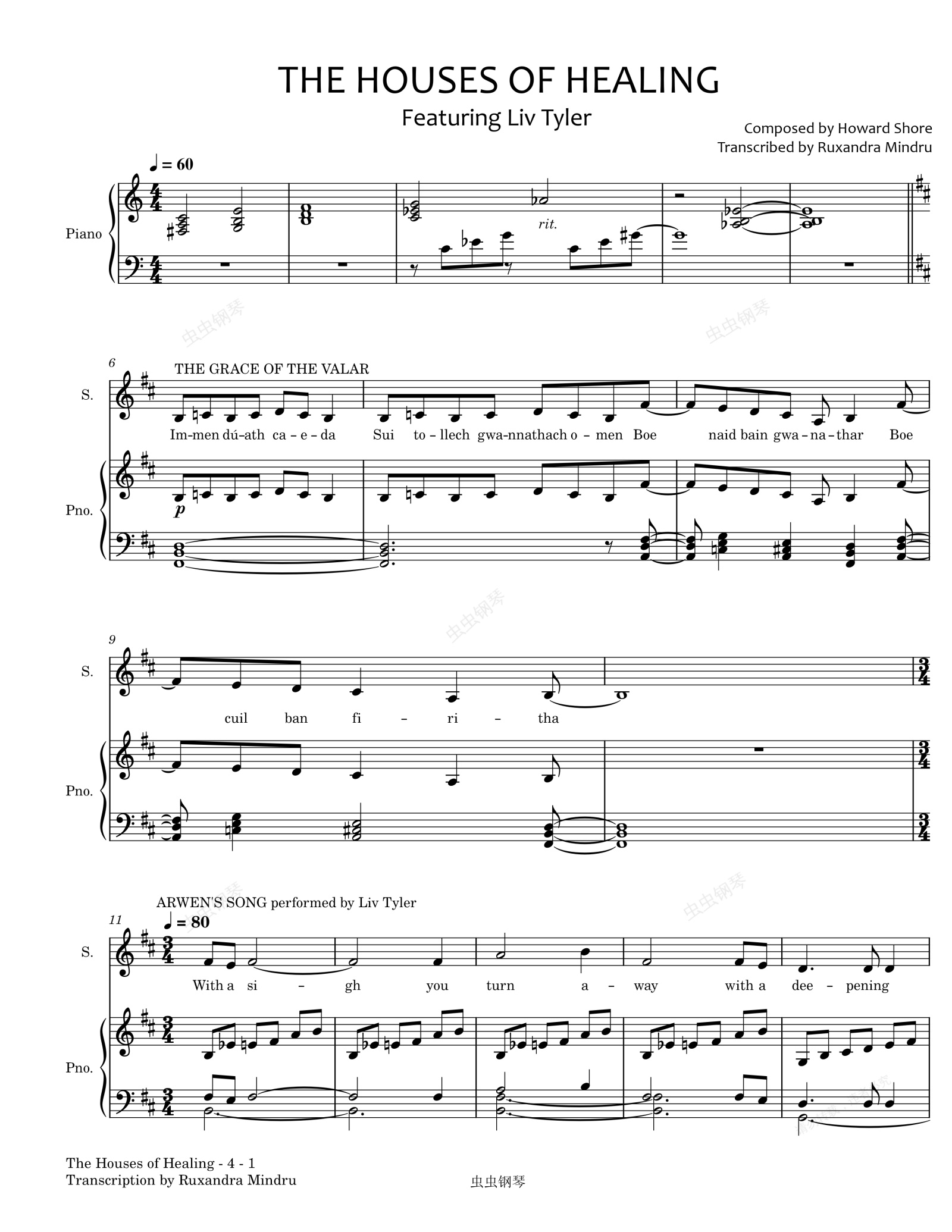钢琴谱:指环王:魔戒再现 电影 THE HOUSES OF HEALING