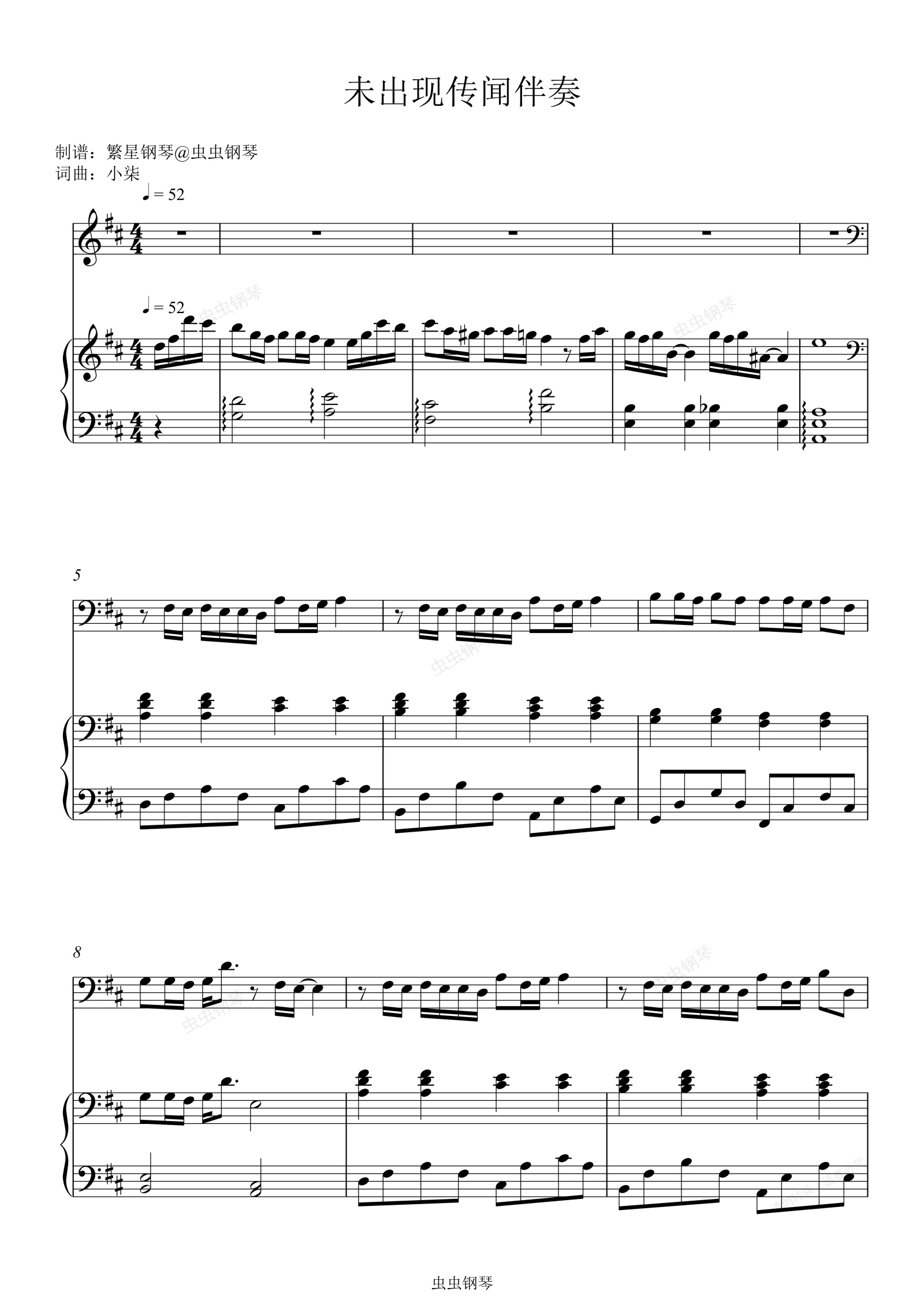 钢琴谱:未出现传闻降D大调弹唱版