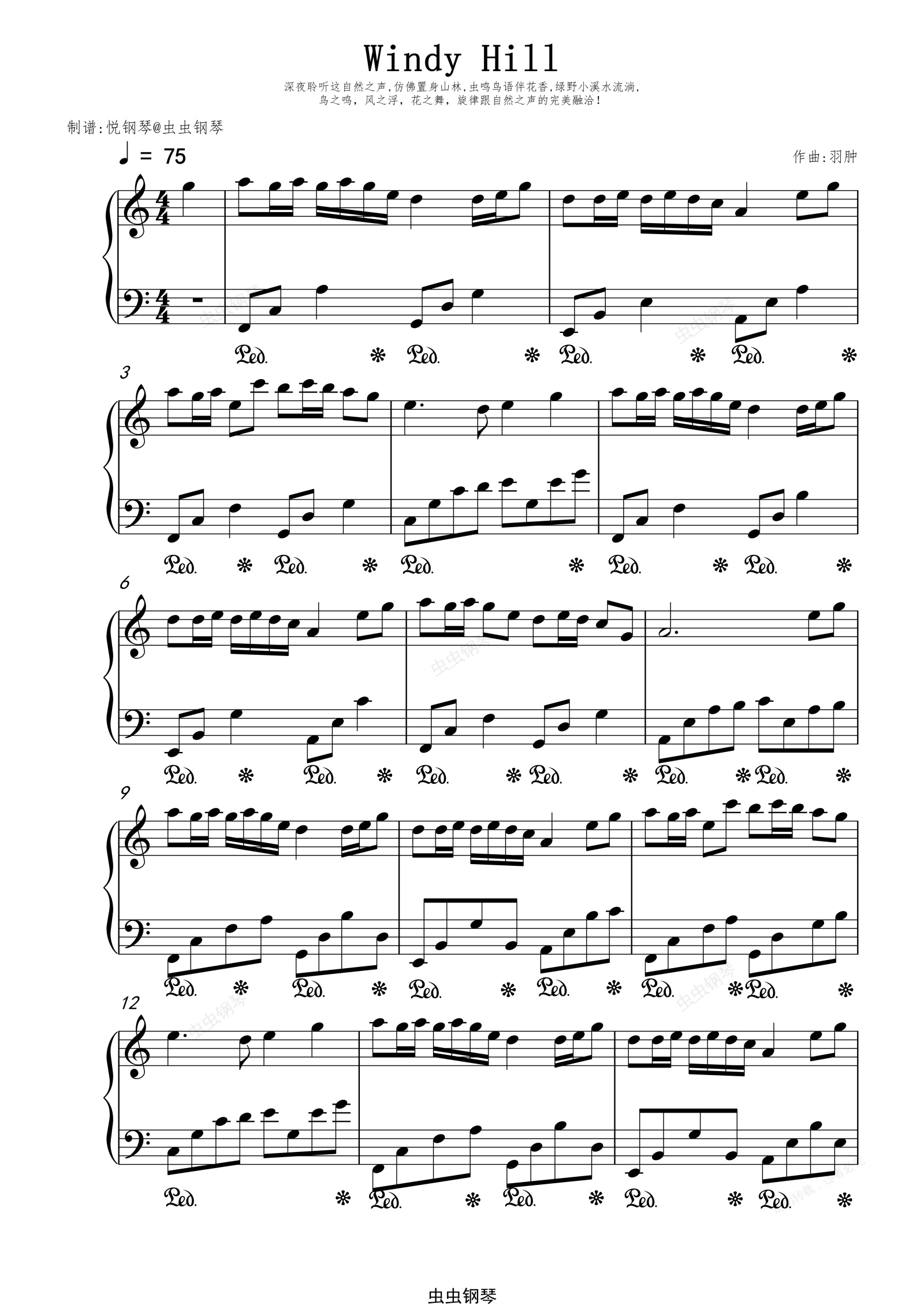 钢琴谱:Windy Hill(风之谷) - 羽肿
