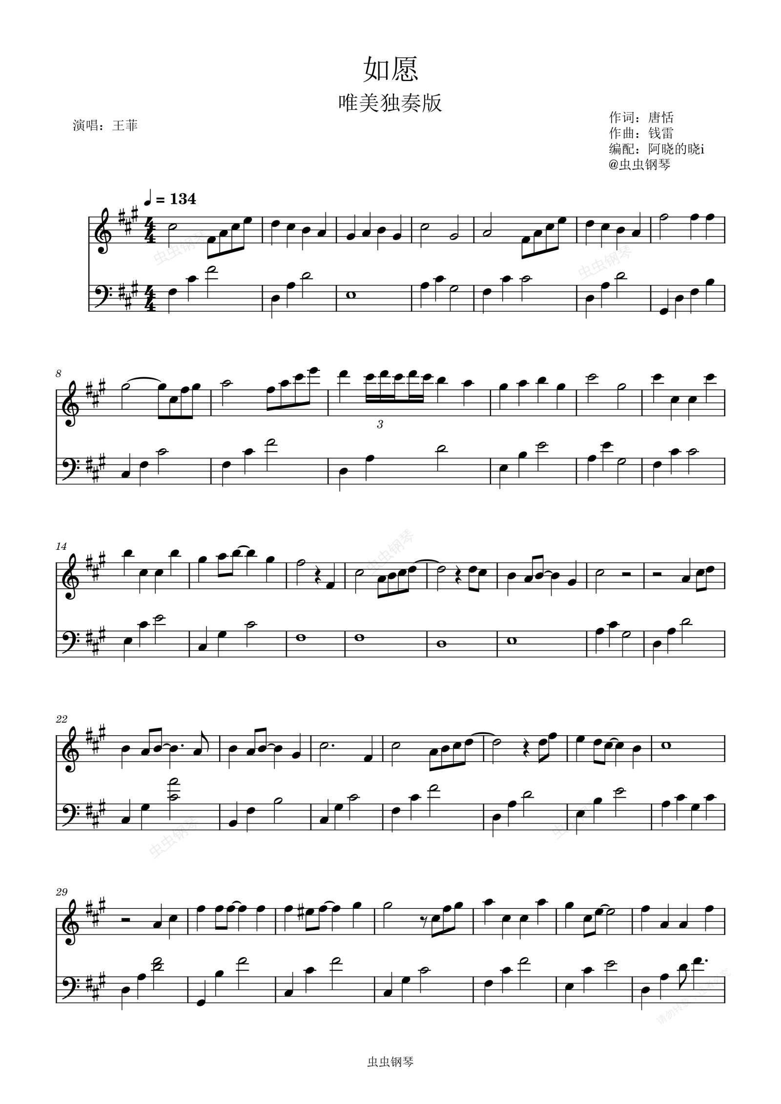 钢琴谱:如愿 唯美钢琴演奏版(电影《我和我的父辈》主题推广曲)