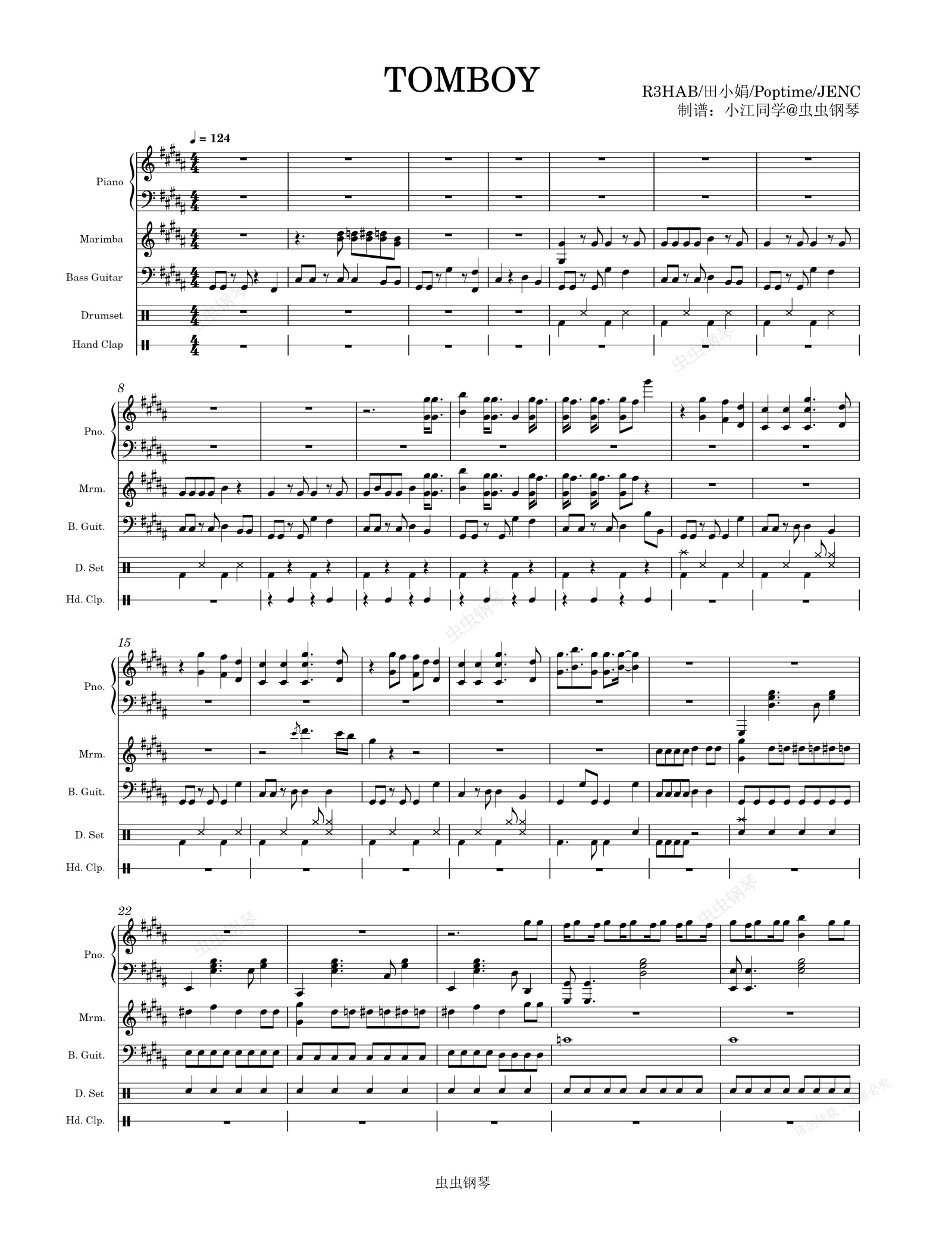 钢琴谱:TOMBOY R3HAB/田小娟/Poptime/JENC