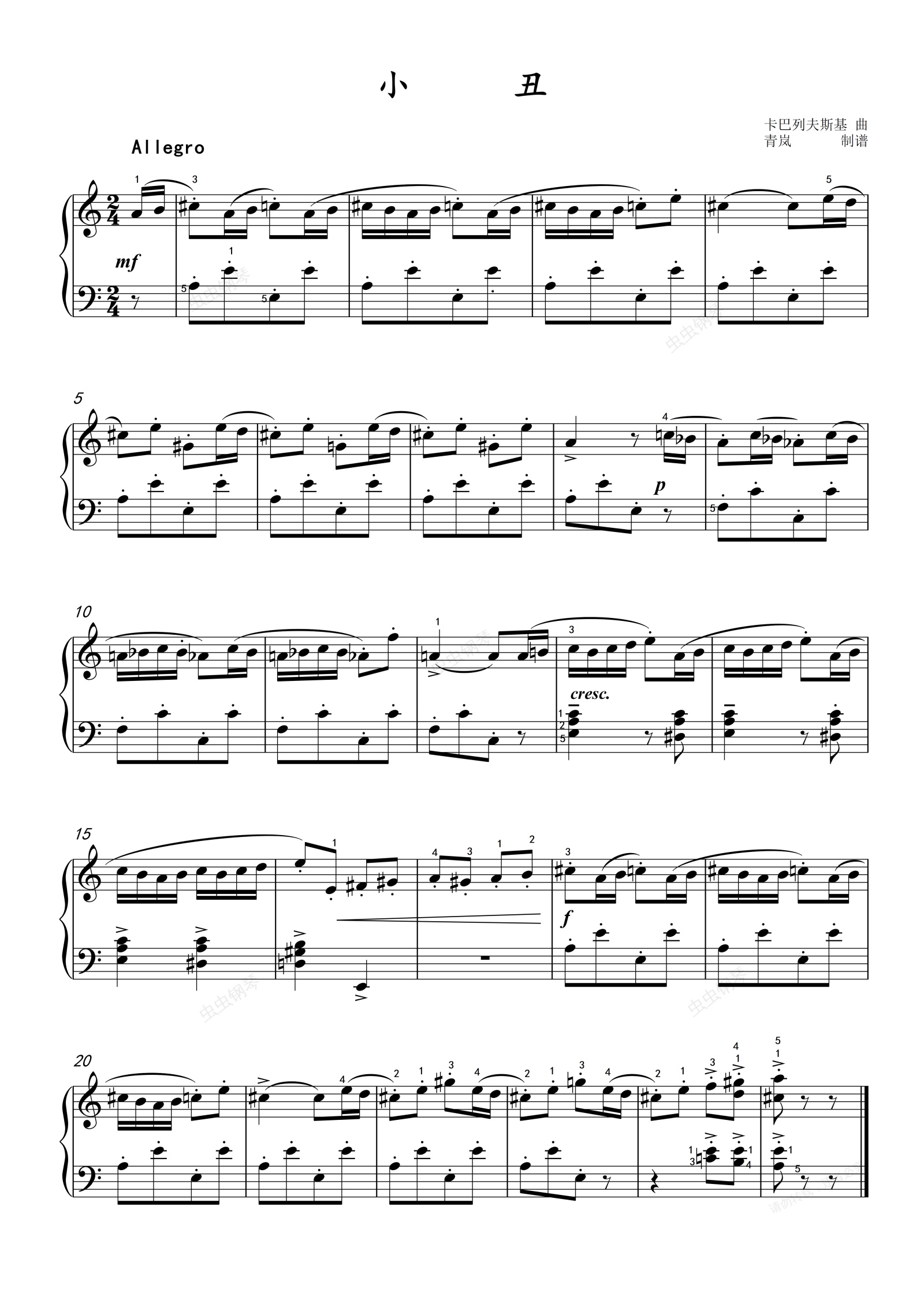 钢琴谱:小丑 卡巴列夫斯基 带指法