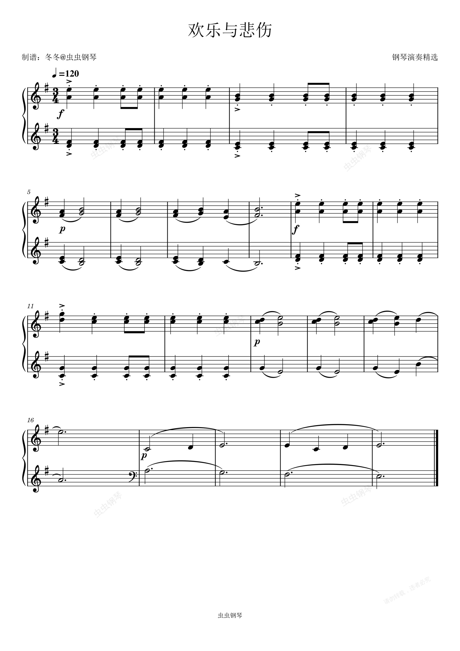 钢琴谱:欢乐与悲伤