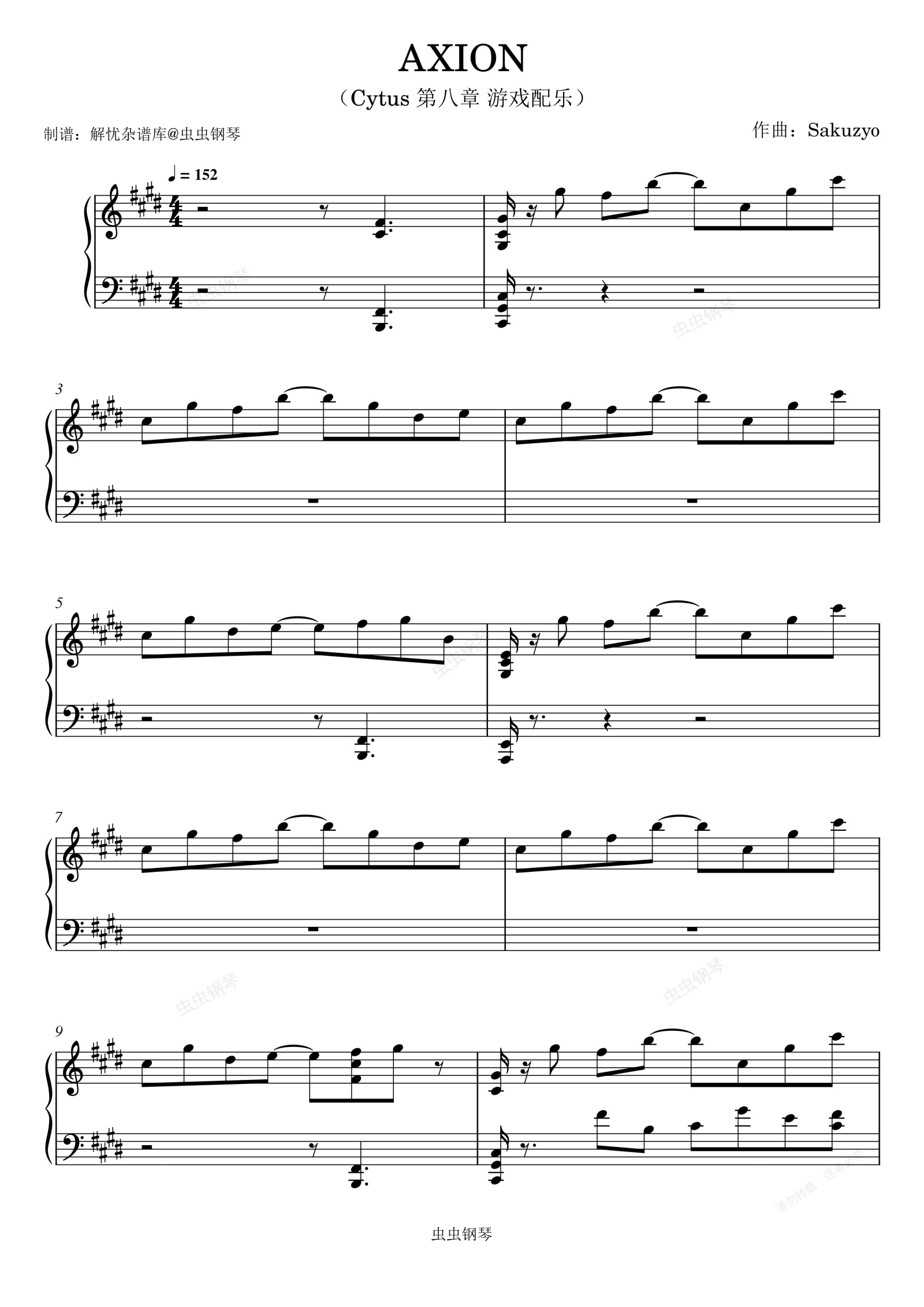 钢琴谱:AXION《Cytus》音乐世界游戏配乐