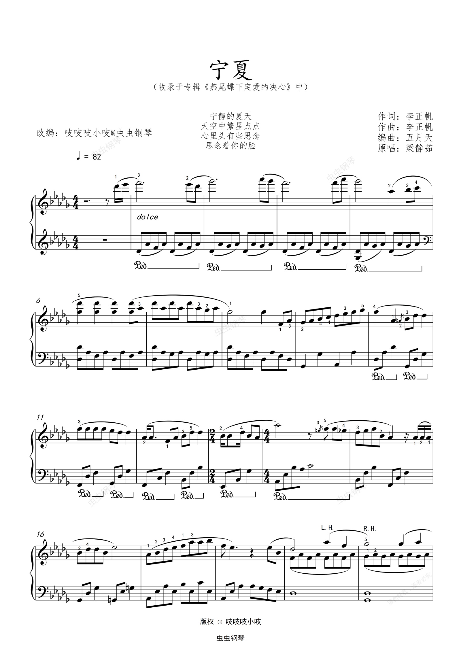 钢琴谱:宁夏 原调(《初学者钢琴曲系列》)