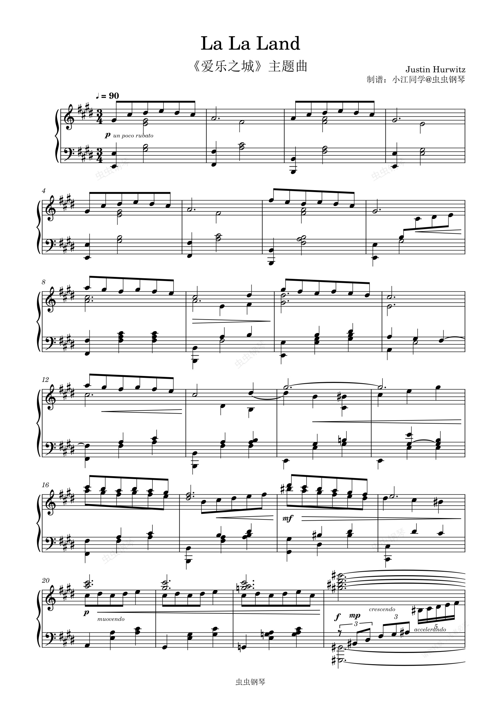 钢琴谱:La La Land 困难版 《爱乐之城》主题曲