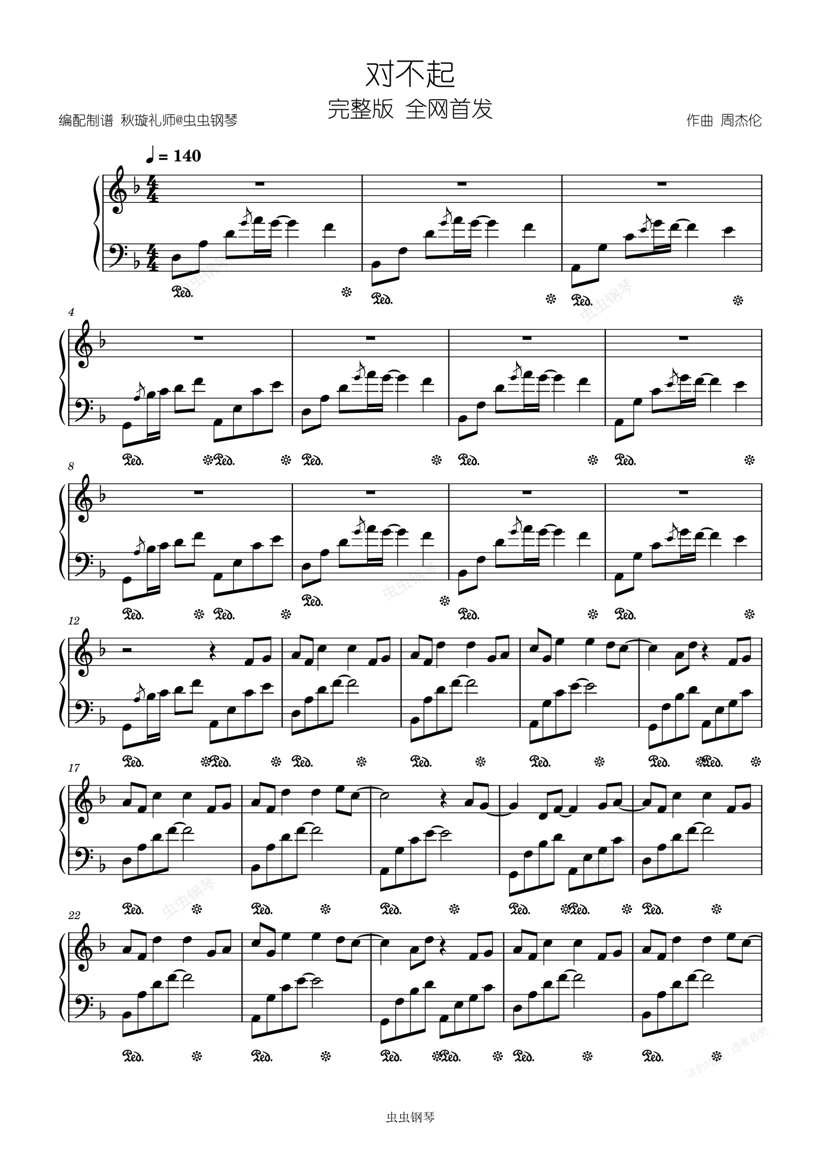钢琴谱:原版-对不起 周杰伦[杰迷演奏级]