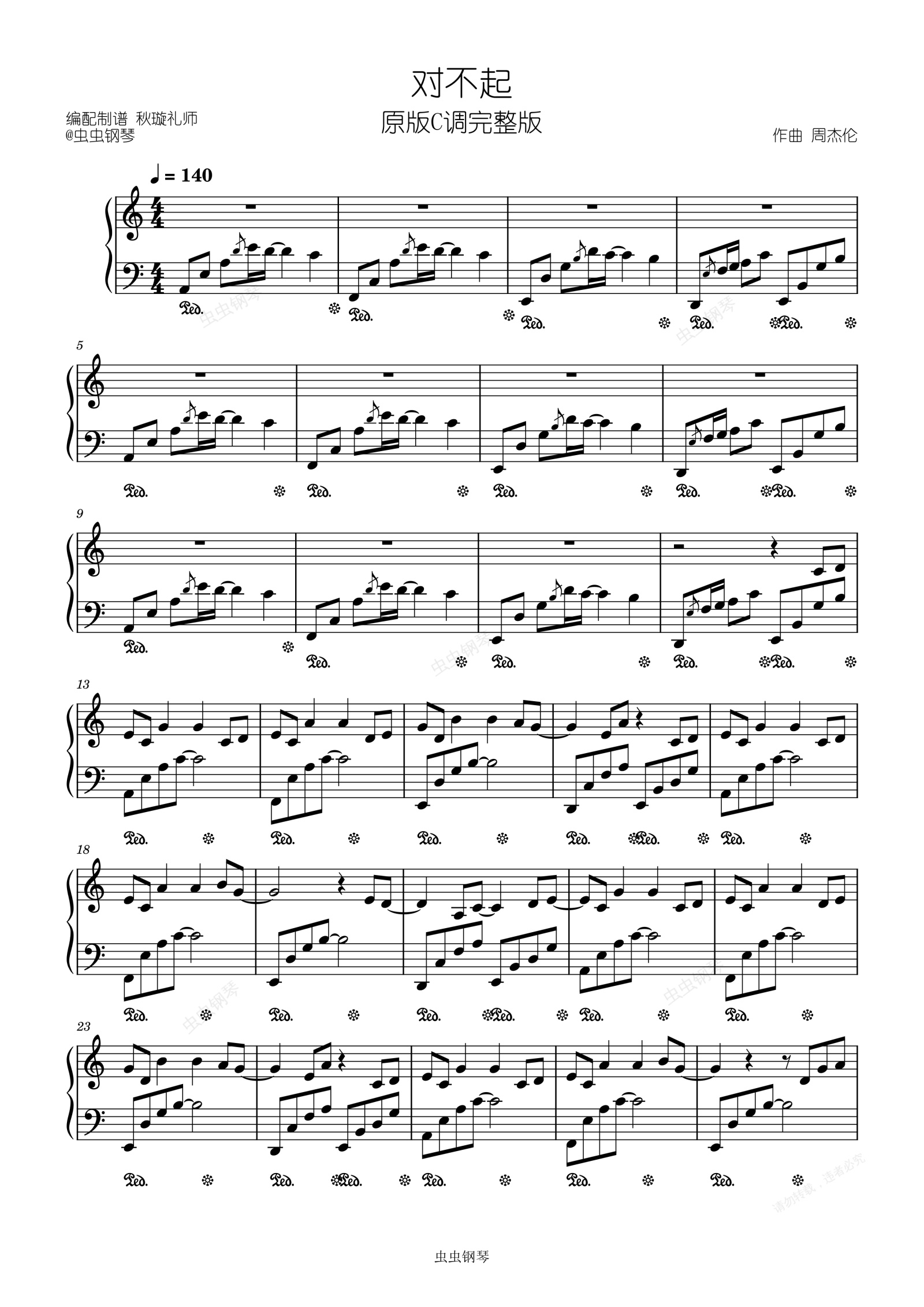 钢琴谱:C调原版-对不起 周杰伦[杰迷演奏级]