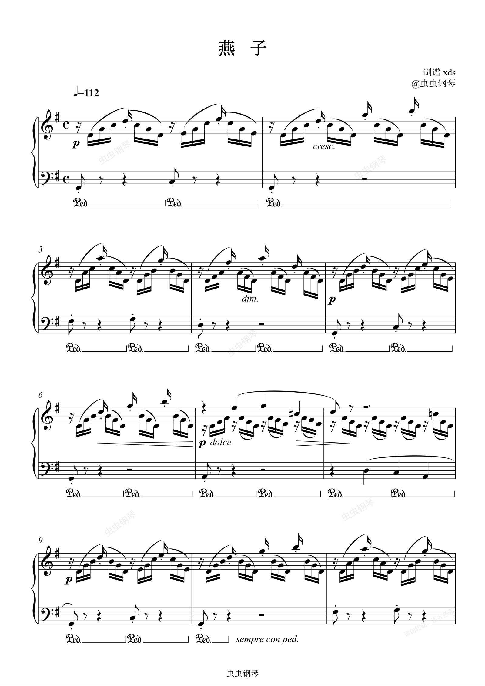 钢琴谱:燕子