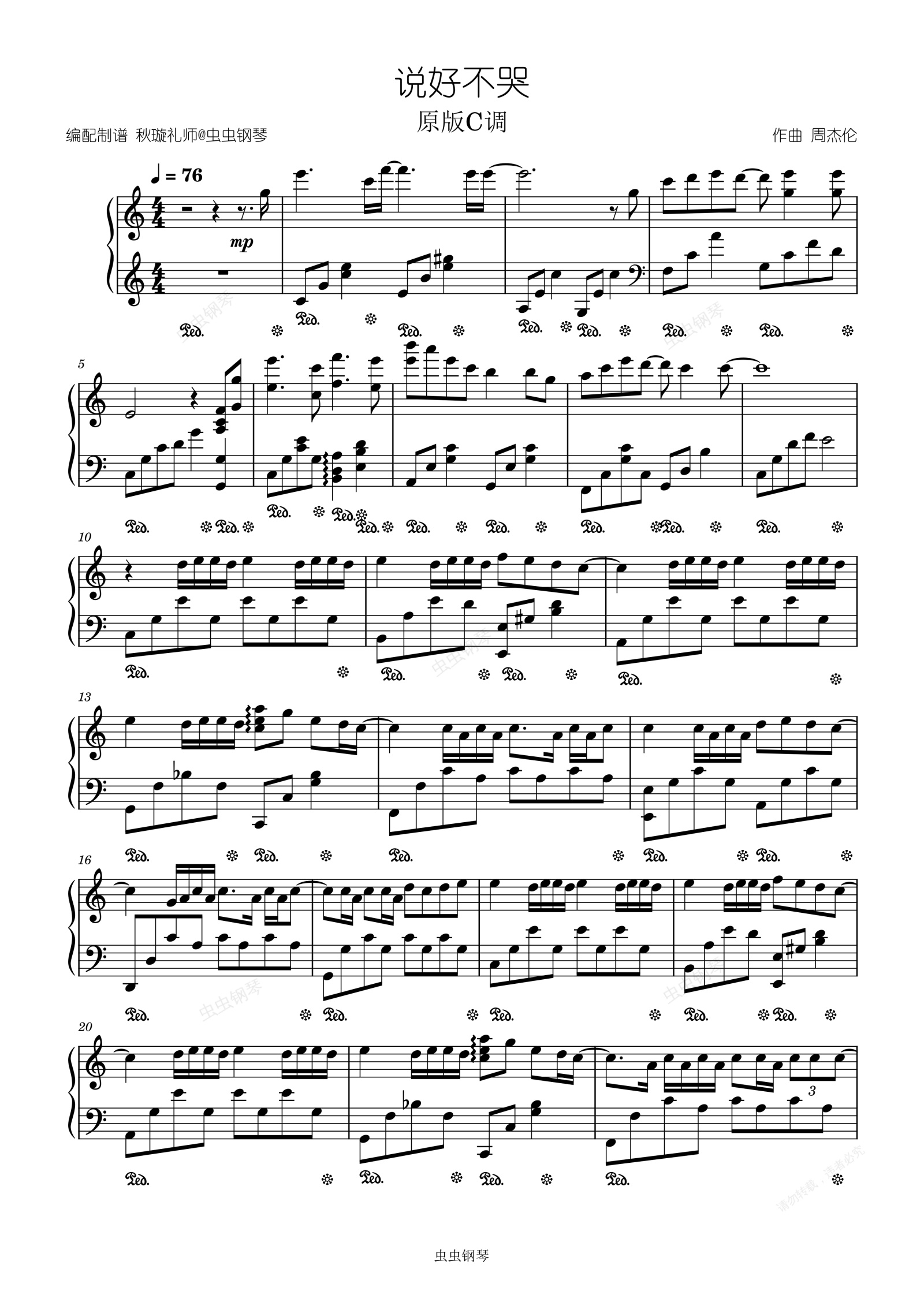 钢琴谱:C调原版-说好不哭 周杰伦[杰迷演奏级]