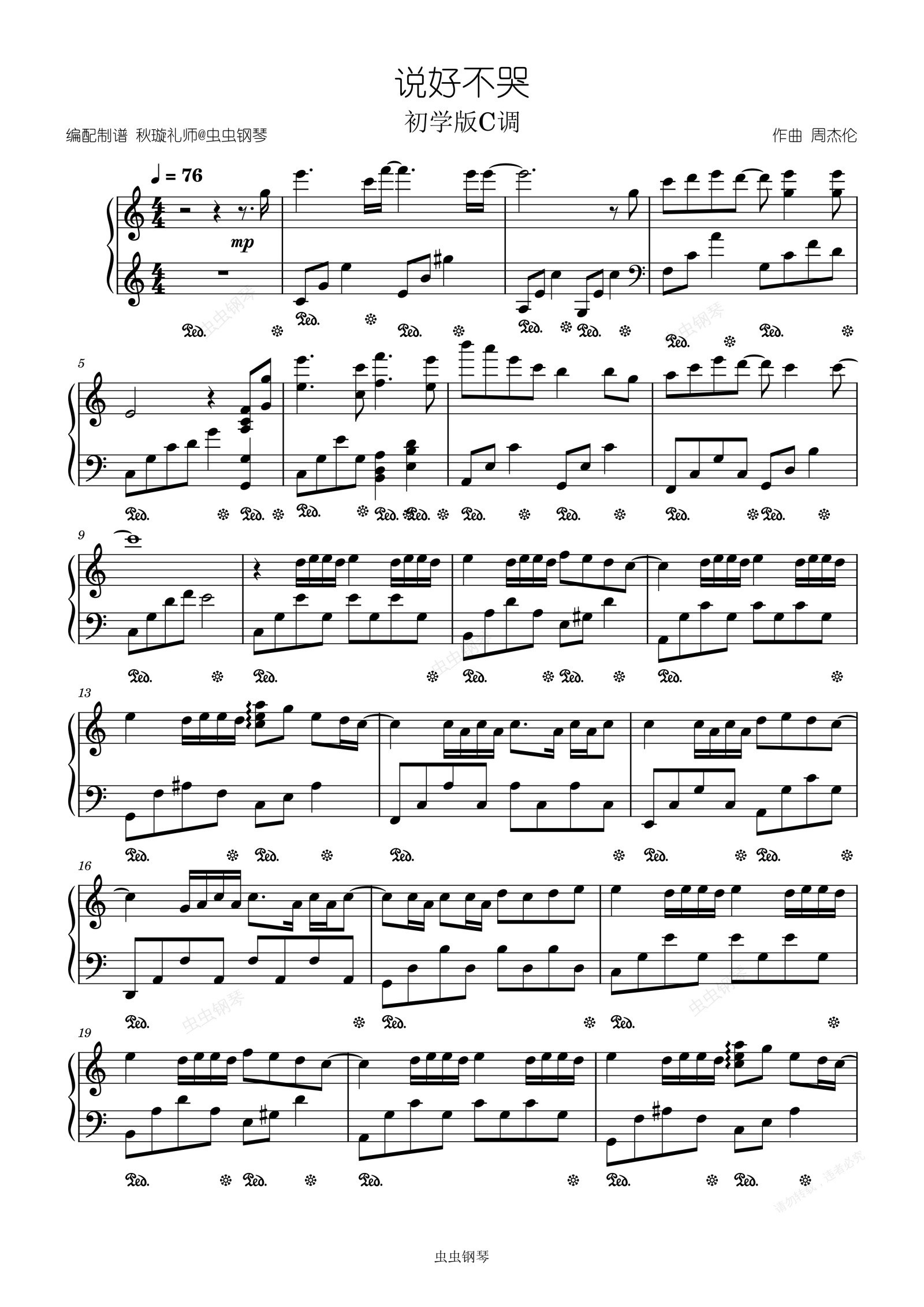 钢琴谱:初学C调-说好不哭 周杰伦[杰迷萌新级]