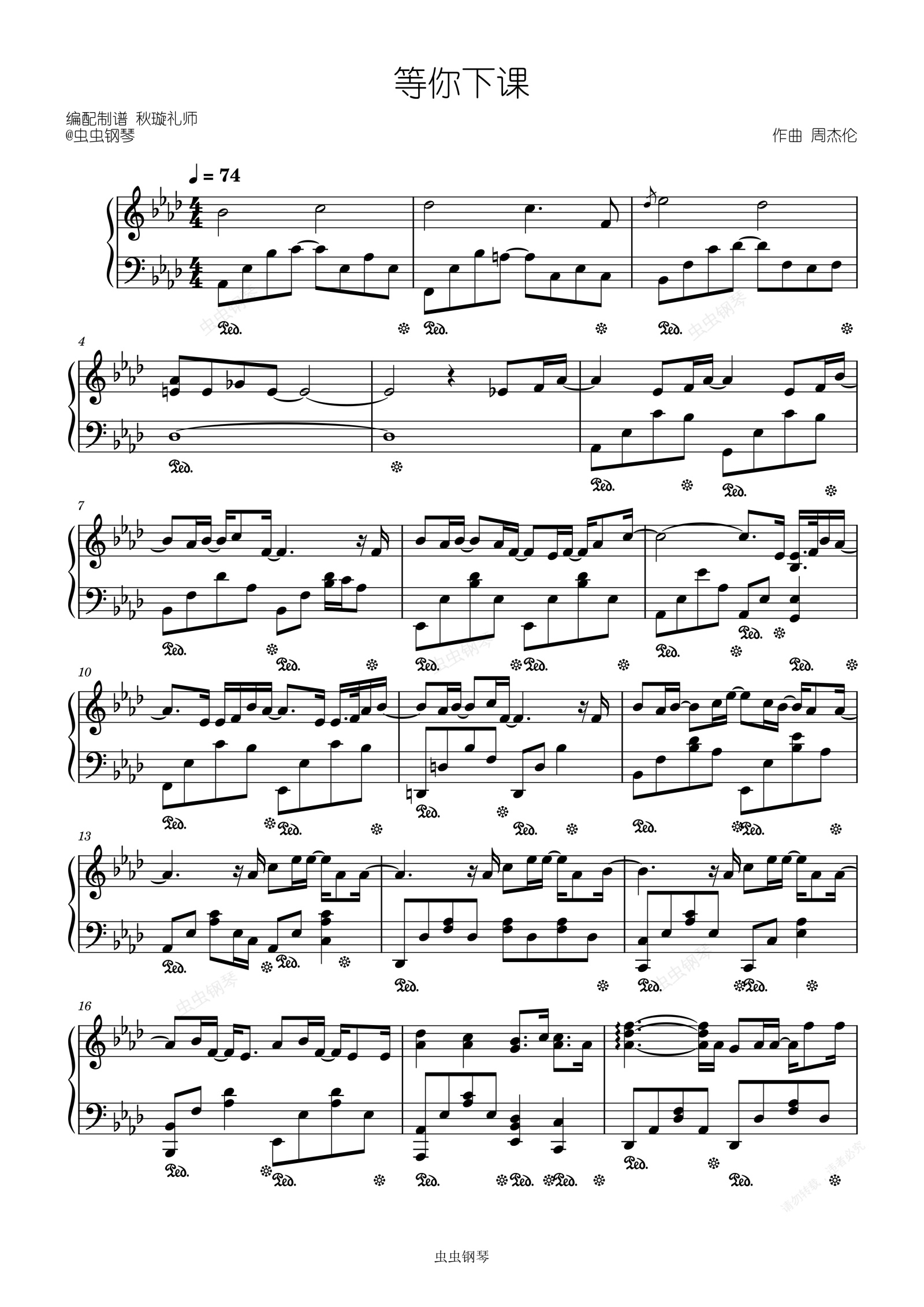 钢琴谱:原版-等你下课 周杰伦[杰迷演奏级]