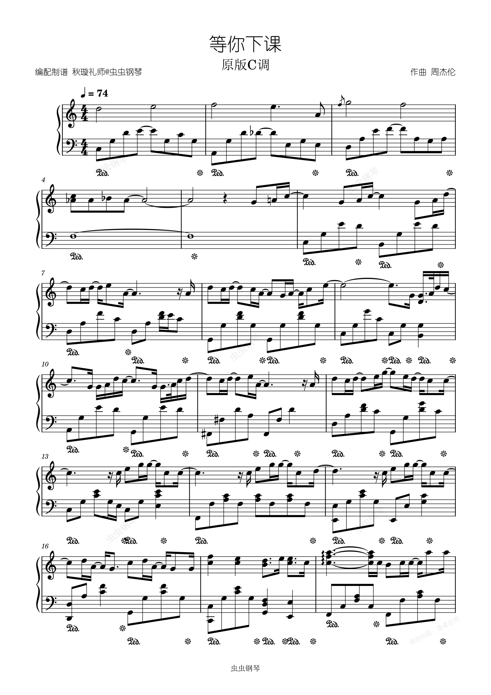 钢琴谱:C调原版-等你下课 周杰伦[杰迷演奏级]