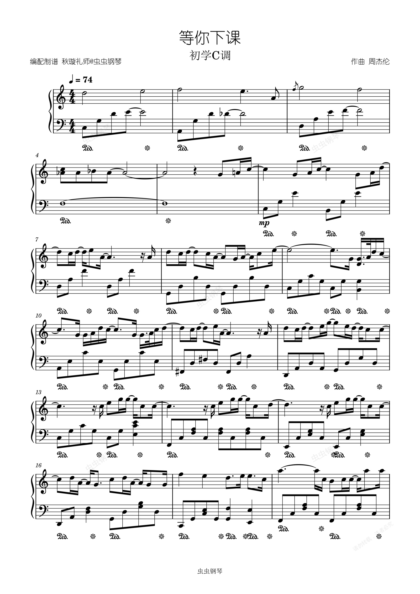 钢琴谱:初学C调-等你下课 周杰伦[杰迷萌新级]