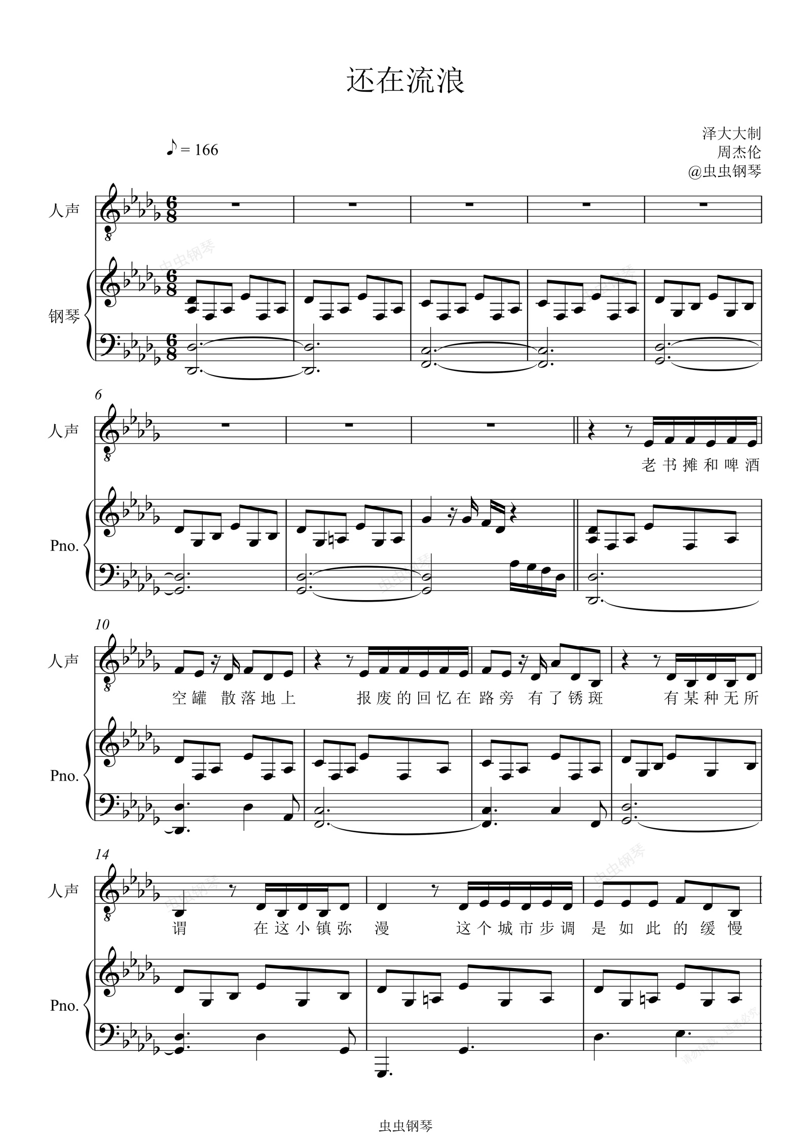 钢琴谱:还在流浪【原版弹唱附词】泽大大 周杰伦