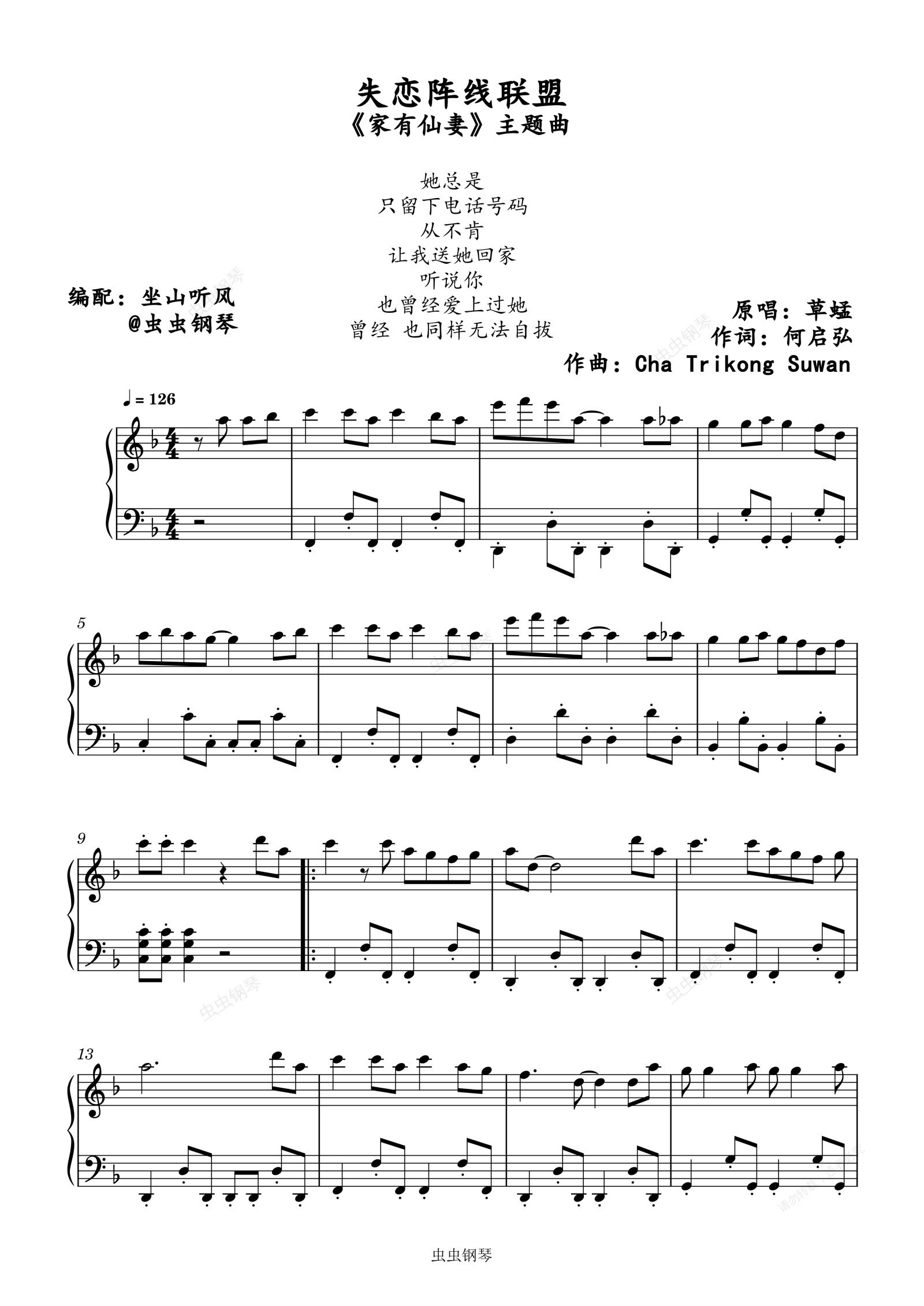 钢琴谱:失恋阵线联盟——《家有仙妻》主题曲
