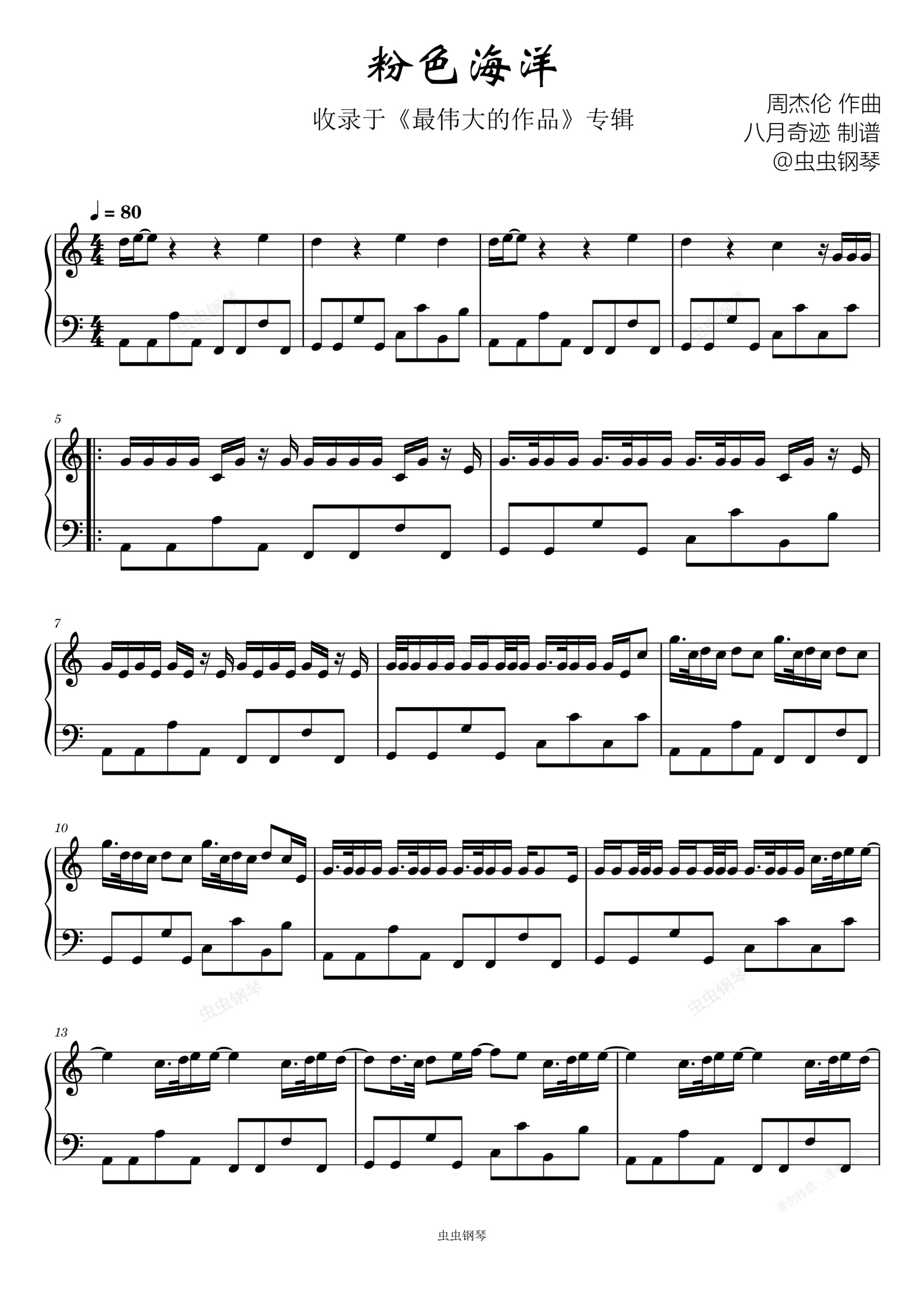 钢琴谱:周杰伦《粉色海洋》C调
