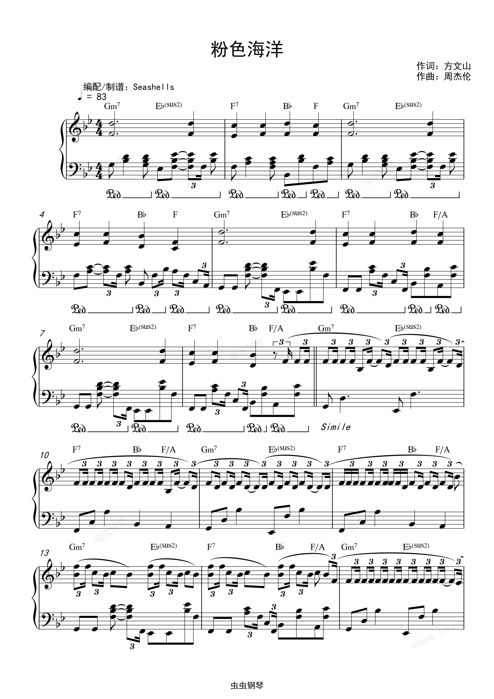 钢琴谱:周杰伦-《粉色海洋》精编钢琴独奏