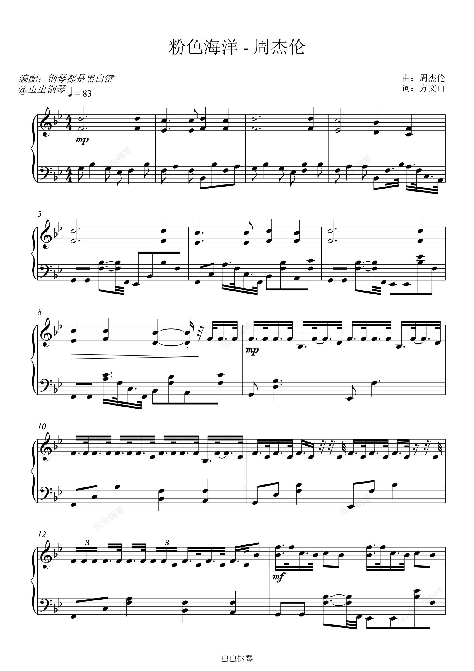 钢琴谱:粉色海洋 - 周杰伦 [极限还原钢琴独奏]