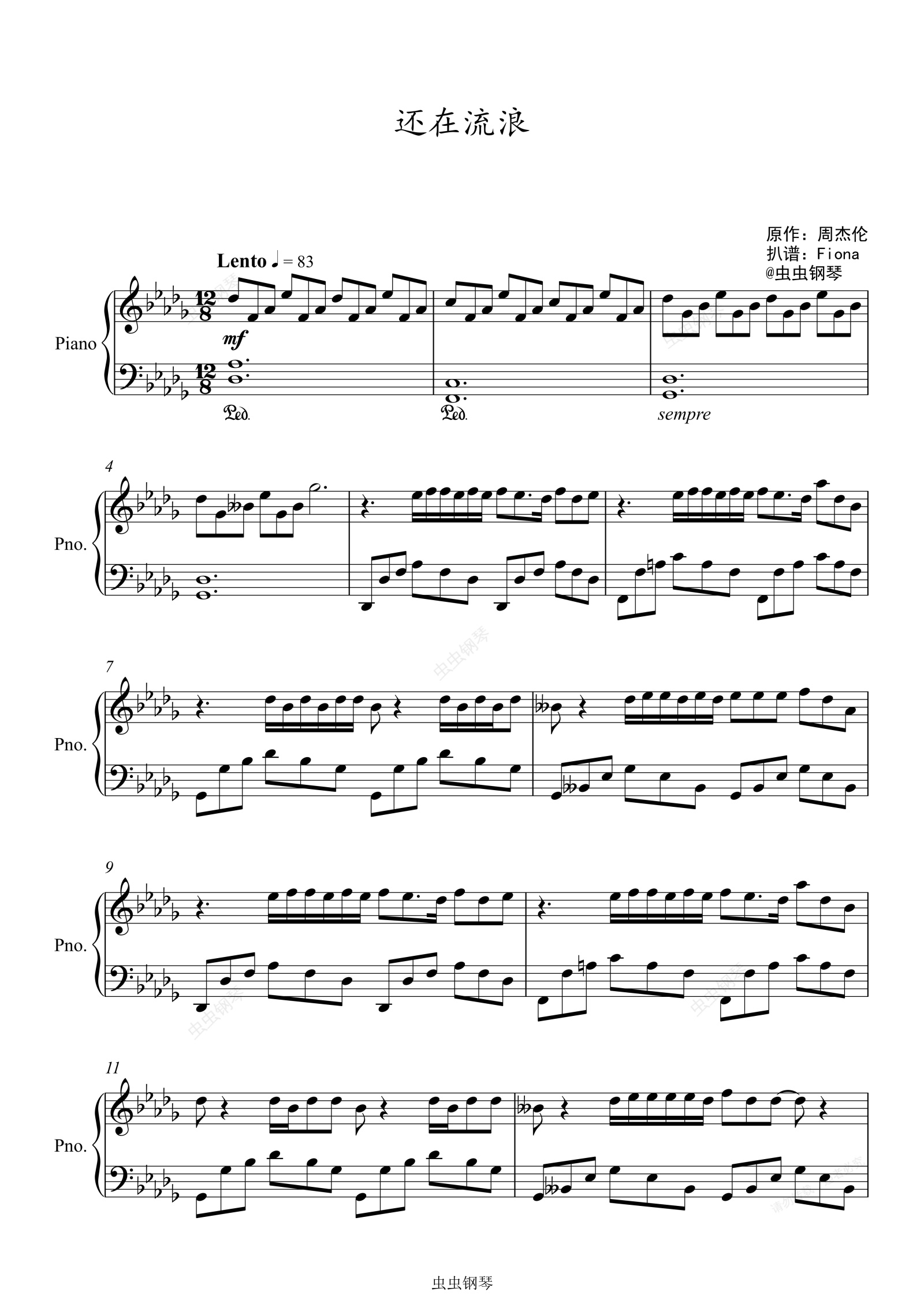 钢琴谱:还在流浪-周杰伦完美钢琴独奏版